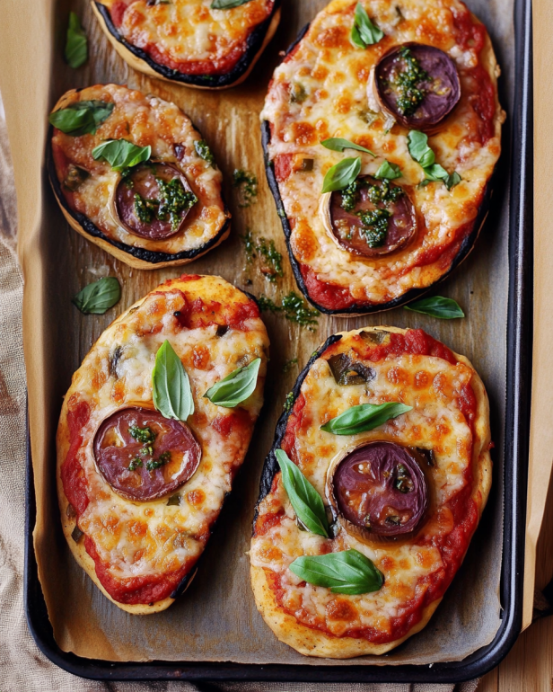 Die Auberginenpizza ist eine köstliche und gesunde Alternative zur traditionellen Pizza. Sie wird aus dicken Scheiben Auberginen zubereitet, die als Basis dienen. Diese kreative Variante ist nicht nur vegan, sondern auch glutenfrei, was sie zu einer idealen Wahl für viele Ernährungsweisen macht. Die Kombination aus saftigen Auberginen, würzigen Tomaten und geschmolzenem pflanzlichen Käse sorgt für ein unvergleichliches Geschmackserlebnis.