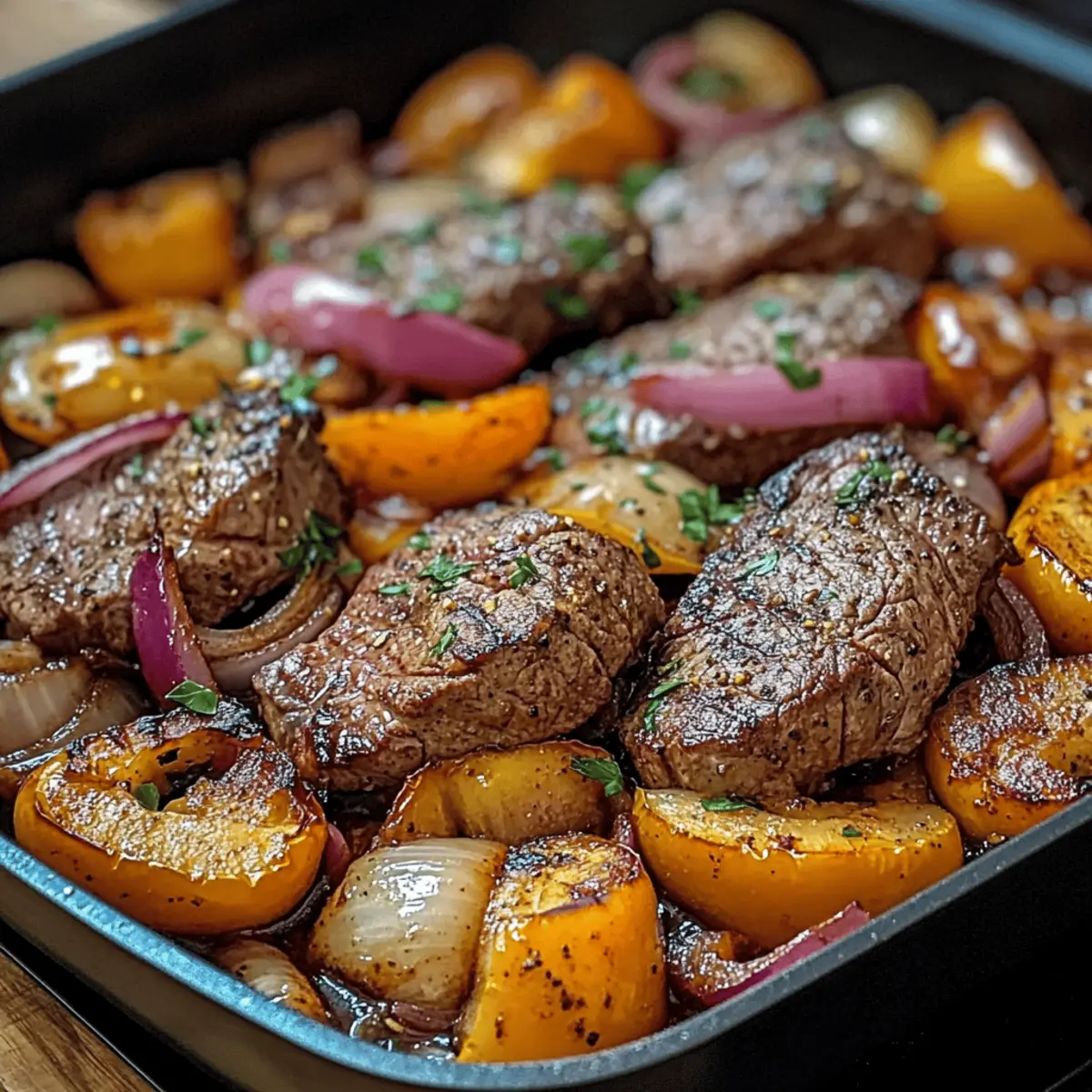 - Würzige Kick: Füge eine Prise Cayennepfeffer oder Paprika hinzu, um dem Blechsteak mit Gemüse eine angenehme Schärfe zu verleihen.