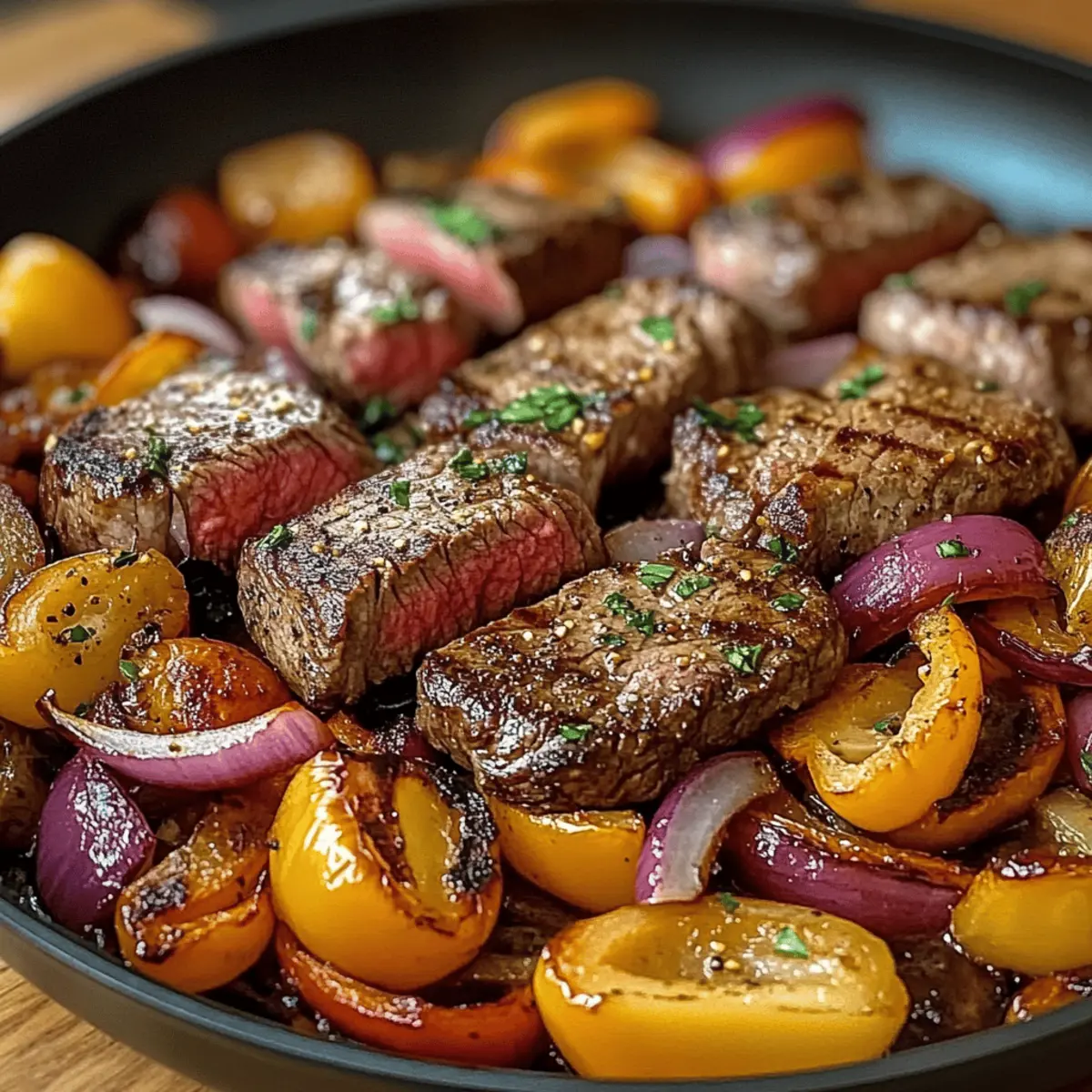 Die Reste sollten in einem luftdichten Behälter im Kühlschrank aufbewahrt werden. So bleiben sie bis zu 3 Tage frisch. Stelle sicher, dass das Steak und das Gemüse gut abgedeckt sind, um Austrocknung und den Verlust von Geschmack zu vermeiden. Wenn du das Gericht länger aufbewahren möchtest, friere es besser portioniert in gefriergeeigneten Behältern ein.