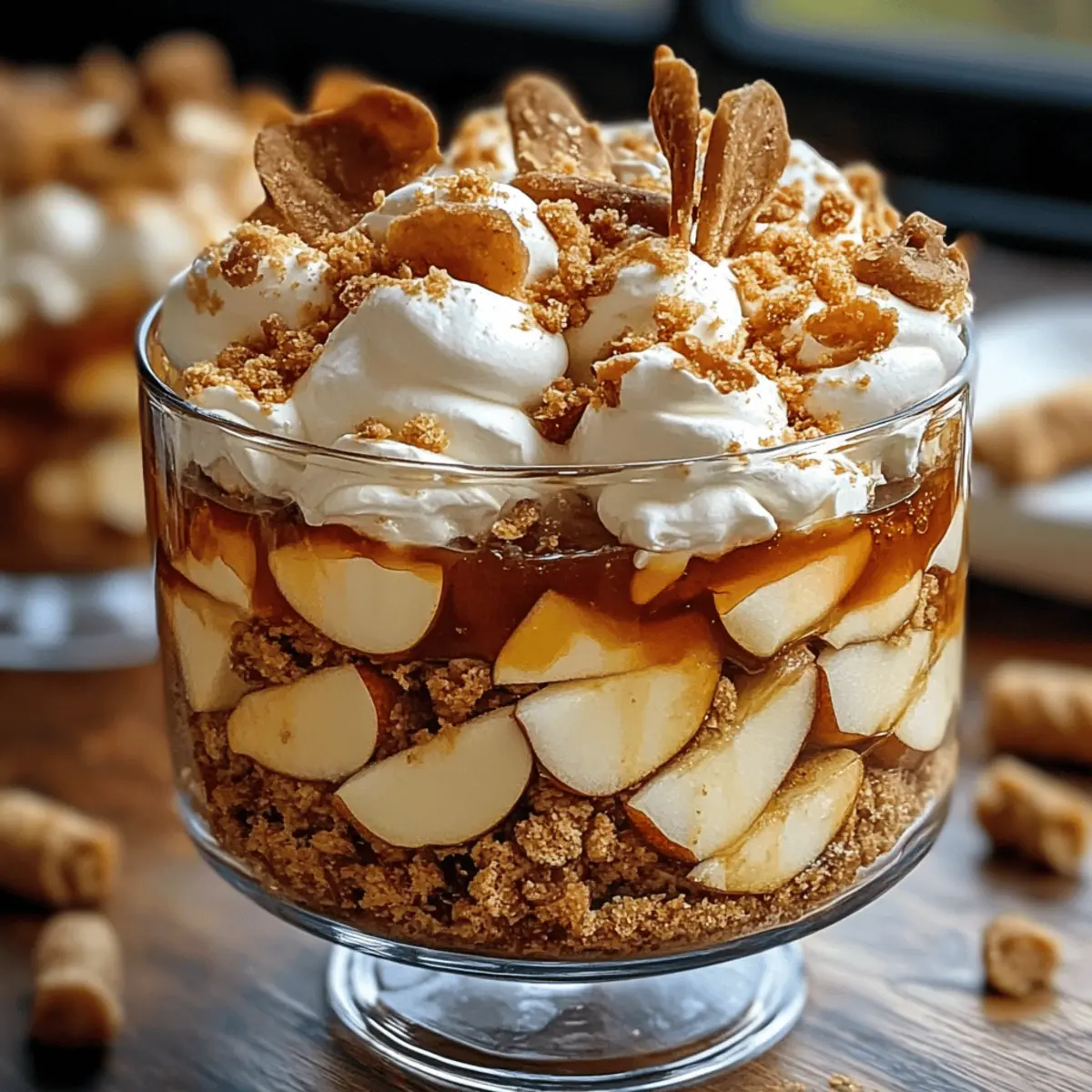 - Crunchy Topping: Füge gehackte Nüsse oder knusprigen Granola zwischen den Schichten hinzu, um mehr Textur zu verleihen. Sie sorgen für einen tollen Kontrast zur Weichheit der Äpfel.