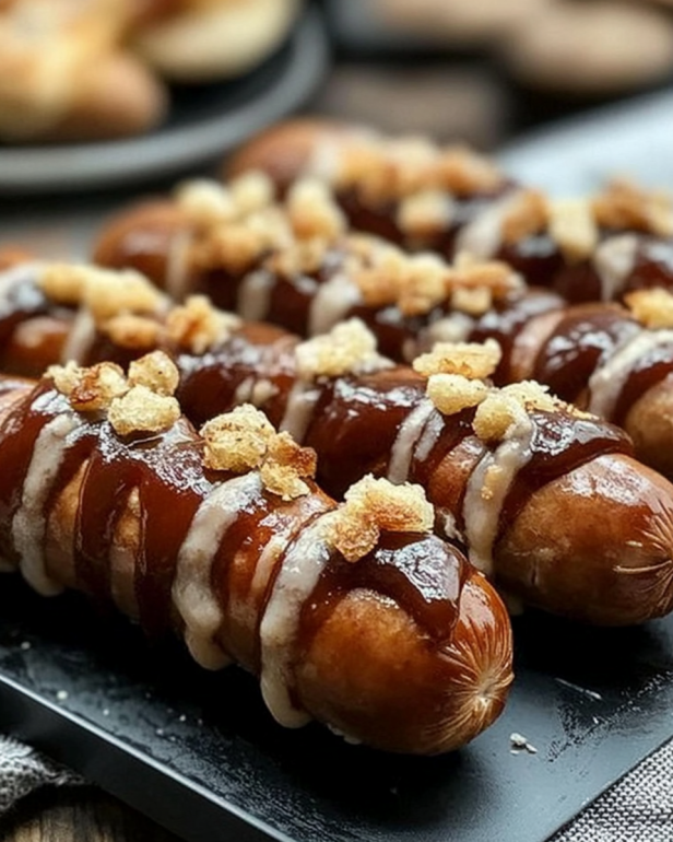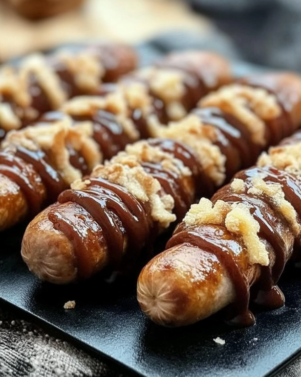• Wickeltechnik: Wickeln Sie den Teig gleichmäßig um die Bratwurststücke. Achten Sie darauf, dass der Teig nicht zu dick ist, damit er beim Backen schön knusprig wird. Eine gleichmäßige Schicht sorgt für ein ansprechendes Aussehen und eine gleichmäßige Garung.