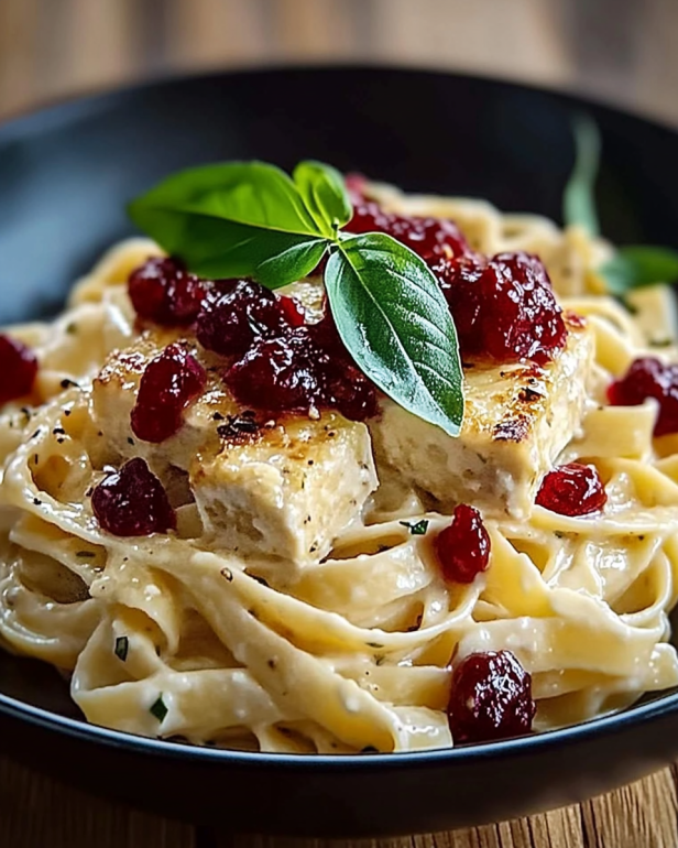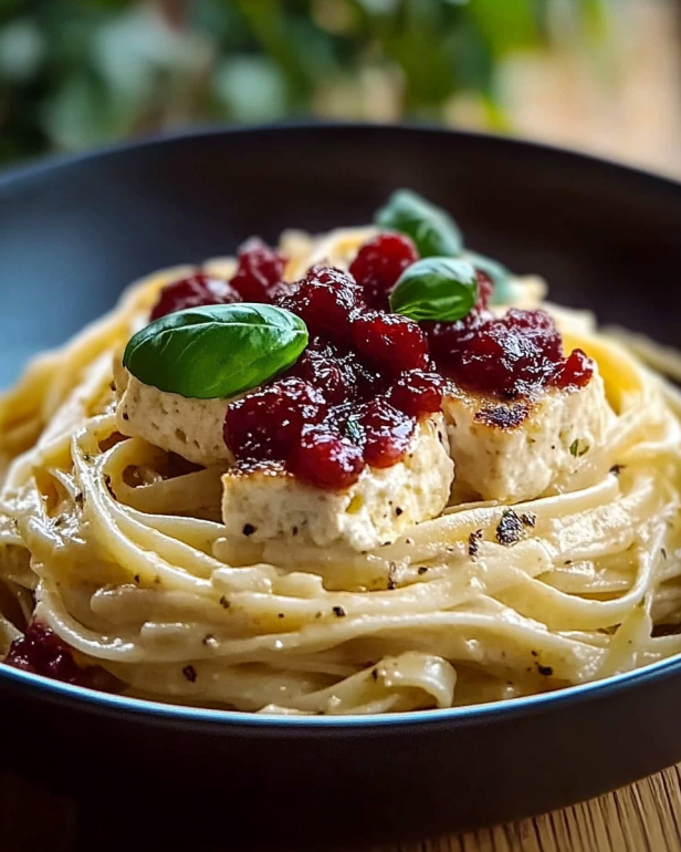 Brie-Pasta mit Preiselbeeren nicht nur köstlich, sondern auch optisch ansprechend. Ihre Gäste werden begeistert sein! Guten Appetit! 🍷✨