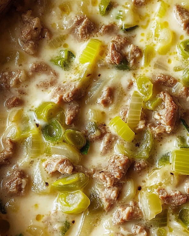 Käse-Lauch-Suppe mit Hackfleisch einfach zubereiten!