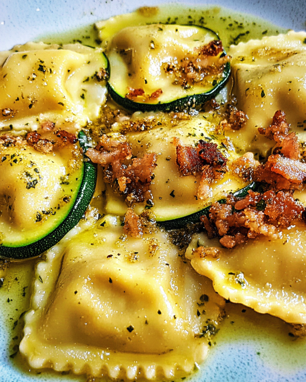 Ravioli mit Zucchini und Pancetta Rezept einfach zubereiten.