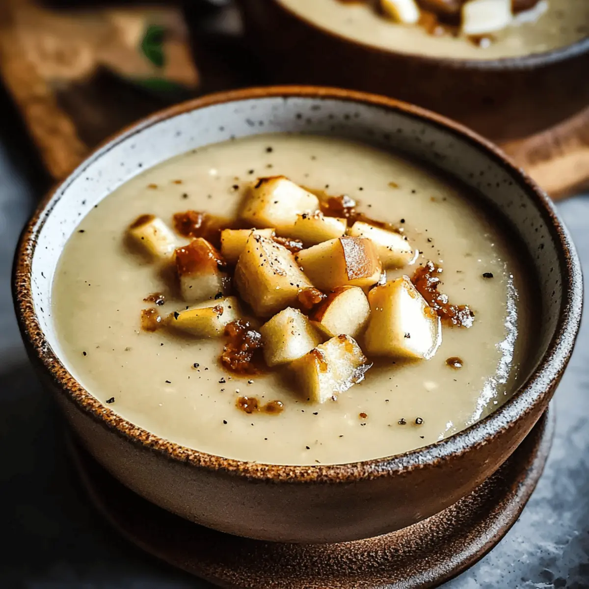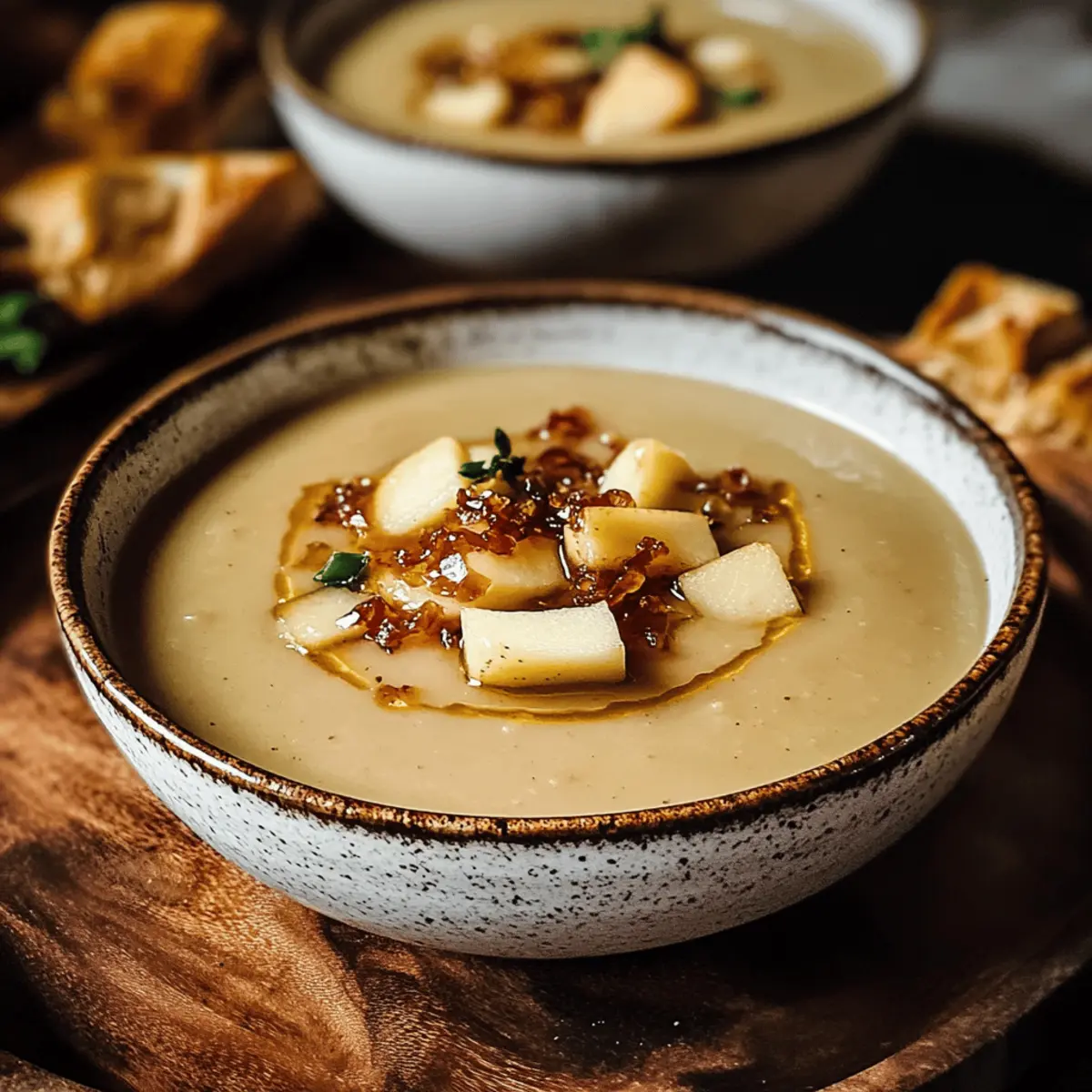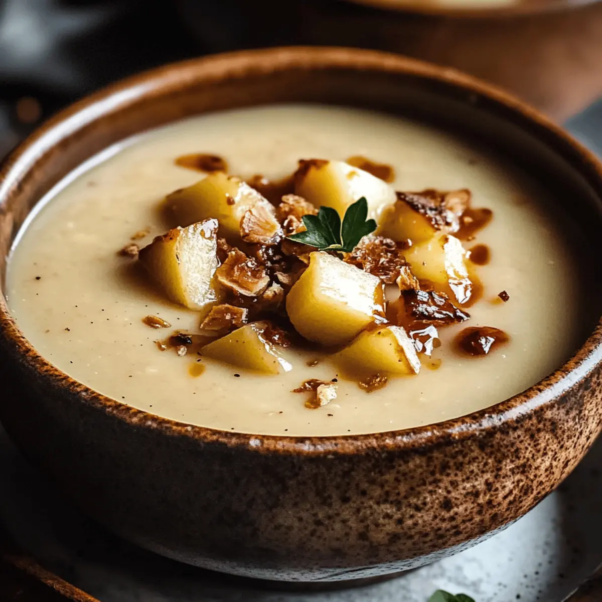 Perfekte Textur: Die samtige Konsistenz der Suppe zusammen mit den zart gebräunten Apfelstücken bietet ein köstliches Erlebnis für die Sinne.