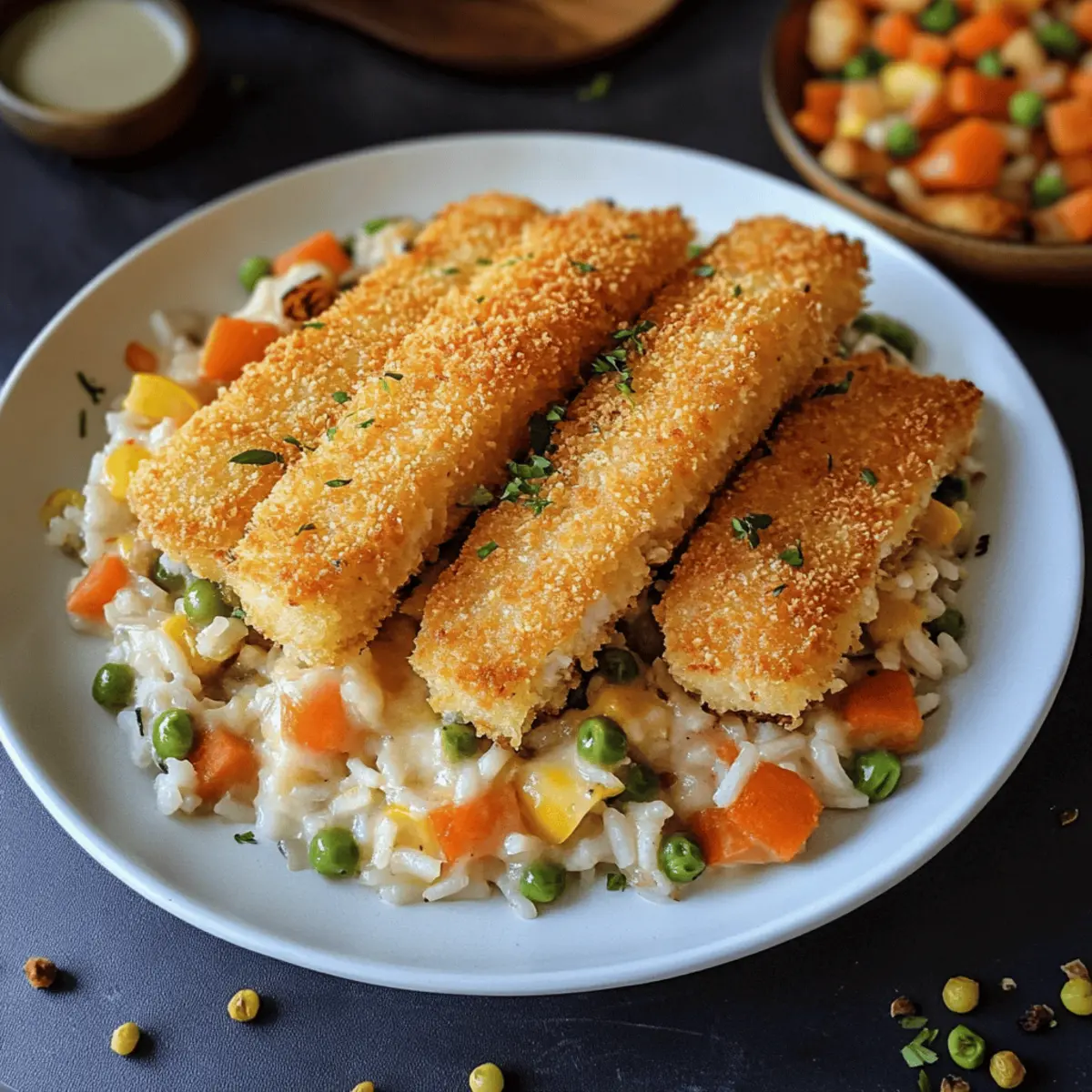 - Vegetarische Option: Tauschen Sie die Fischstäbchen gegen pflanzliche Alternativen oder zusätzliches Gemüse aus, um eine ebenso köstliche Variante zu kreieren.