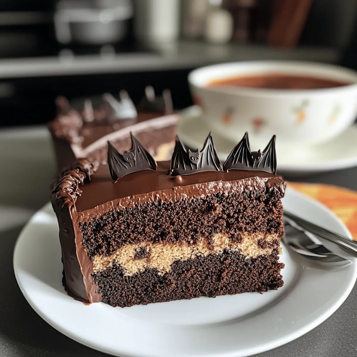 Kreativität: Der Fledermaus Überraschungskuchen ist nicht nur ein einfacher Schokoladenkuchen, sondern auch ein Fest für die Augen mit seinen süßen Fledermausformen, die beim Anschneiden großartige Überraschungen offenbaren.