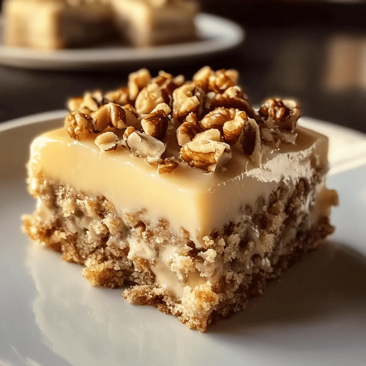 - Backe den gesamten Kuchen erneut für 10 bis 15 Minuten bei 180°C, bis das Walnuss-Topping leicht karamellisiert ist. Lass den Kuchen nach dem Backen vollständig abkühlen, bevor du ihn in Stücke schneidest.