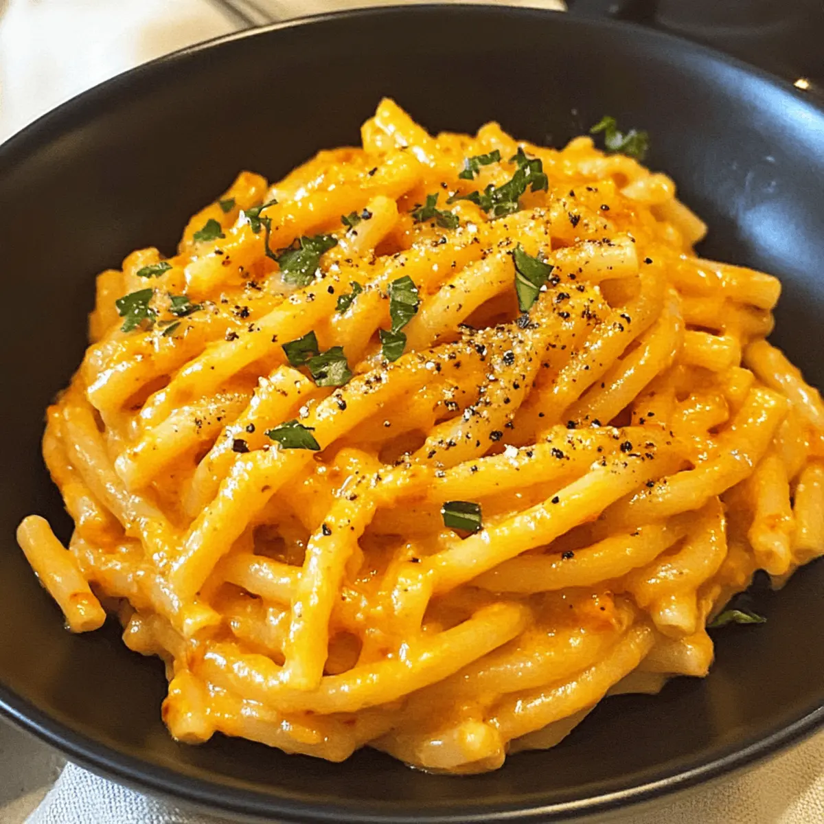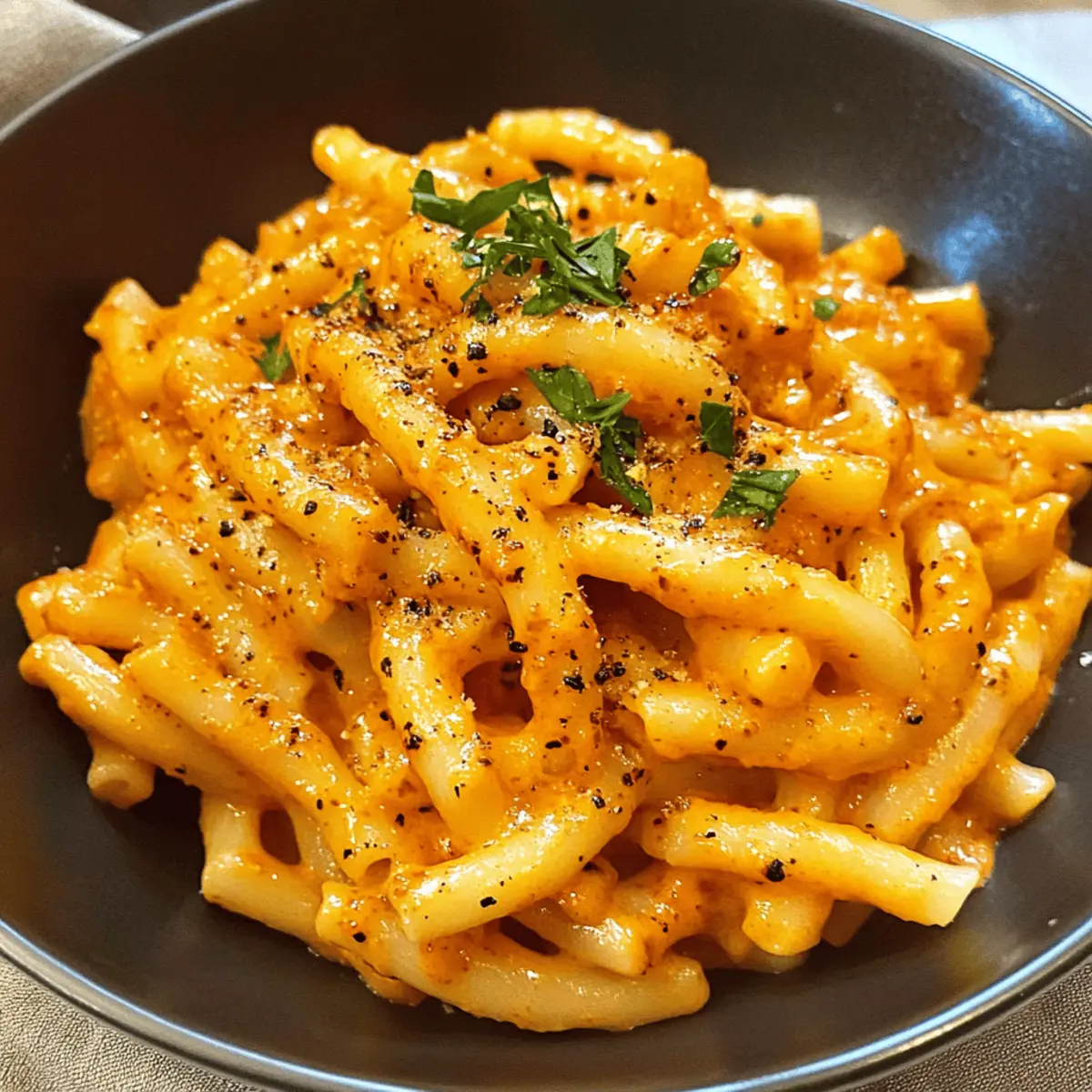 - Serviere die Gochujang Pasta heiß, garniert mit frisch gehackter Petersilie.
