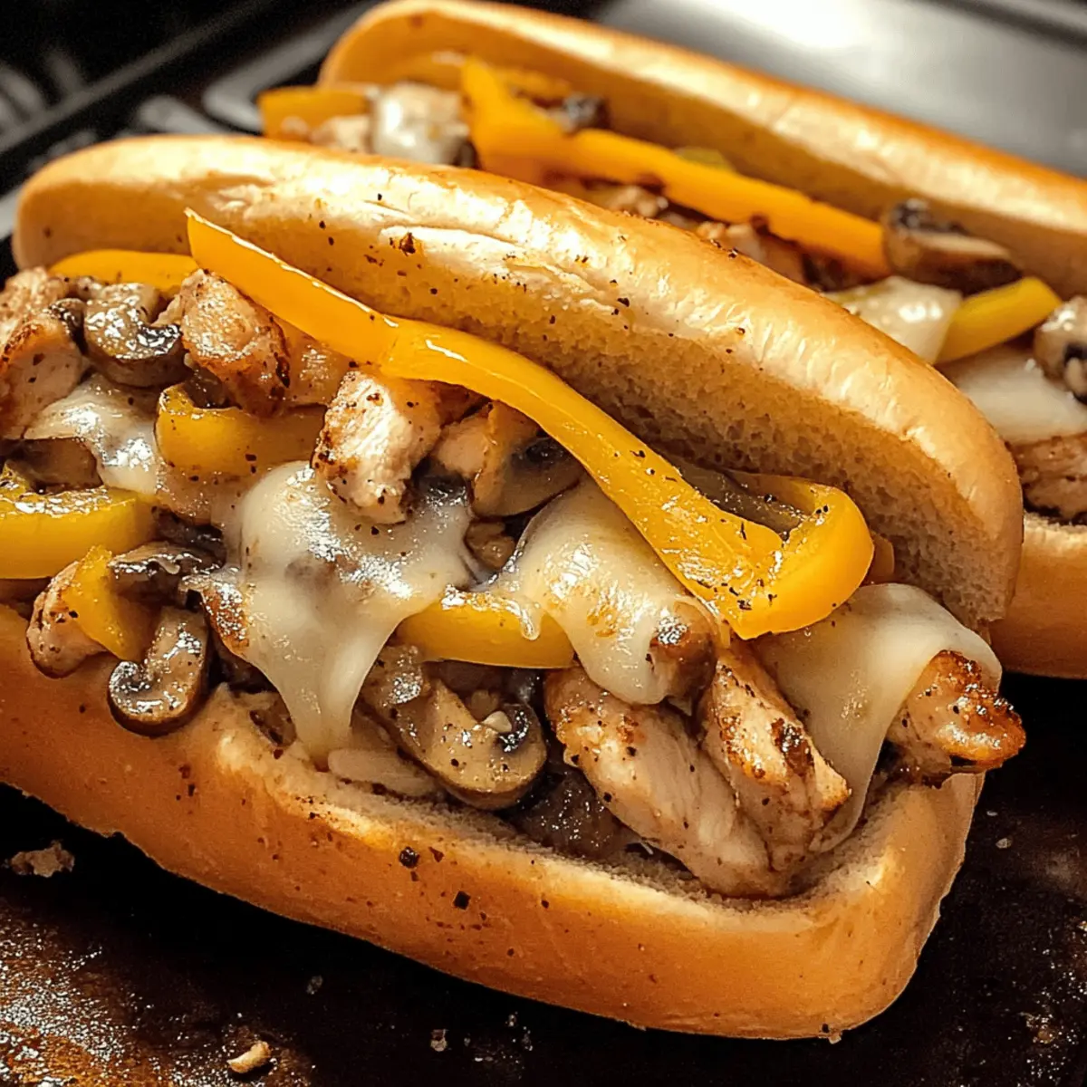 Fülle die frisch gerösteten Brötchen mit dem Hähnchen-Gemüse-Käse-Mix. Achte darauf, dass du reichlich Füllung nimmst, damit jedes Sandwich köstlich und voller Geschmack ist. Serviere die Hähnchen-Cheesesteaks heiß und genieße sie sofort!