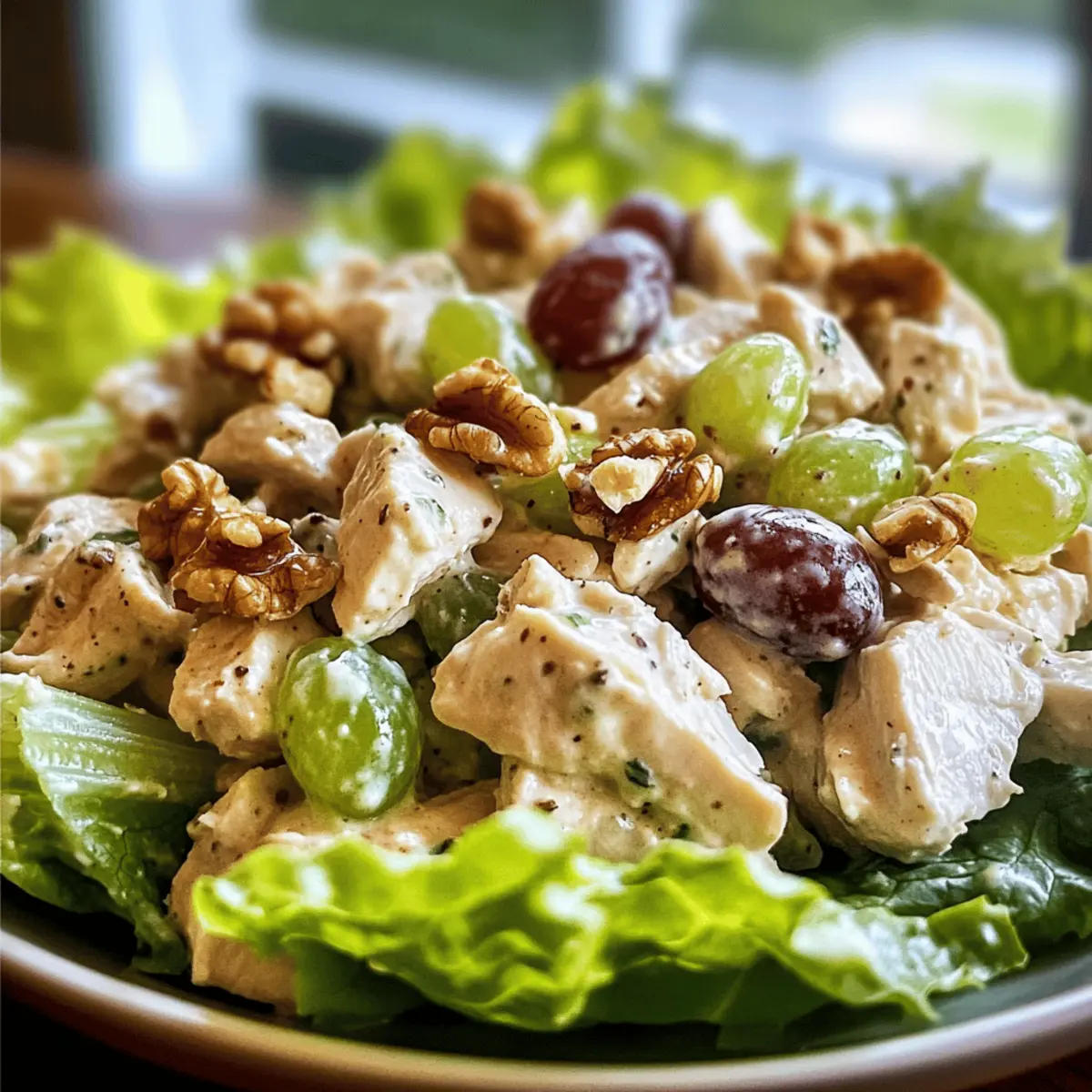 Dieser Hähnchensalat ist ideal für Meal Prep! Du kannst das gekochte Hähnchen bis zu 3 Tage im Voraus zubereiten und im Kühlschrank aufbewahren. Ebenso kannst du die Gemüsezutaten, wie Sellerie und Trauben, ebenfalls bis zu 24 Stunden vor dem Servieren vorbereiten; achte darauf, die Trauben in einem luftdichten Behälter zu lagern, um die Frische zu bewahren. Das Dressing kannst du separat anfertigen, um die cremige Konsistenz zu erhalten und ein Durchweichen der Zutaten zu vermeiden. Wenn du bereit bist, den Hähnchensalat zu servieren, einfach alles zusammenfügen und gut vermengen – so erhältst du ein frisches und schmackhaftes Gericht im Handumdrehen!
