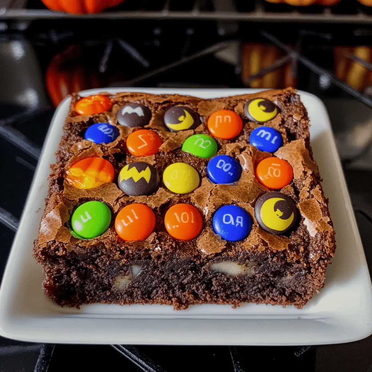 Halloween-Metallschalen: Serviere die Brookies aus bunten Halloween-Geschirr, um das festliche Ambiente zu unterstreichen – eine visuelle Freude für große und kleine Naschkatzen.
