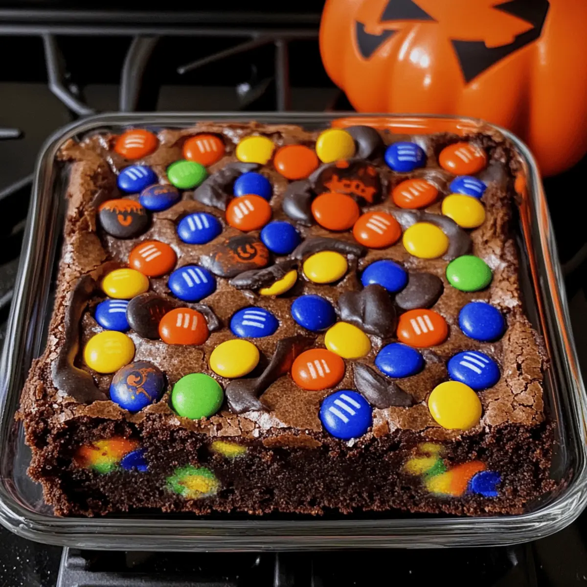 Optional kannst du nach dem Backen weitere M&Ms auf die warmen Halloween Brookies streuen, falls einige in den Teig gesunken sind. Das sorgt für eine noch festlichere Optik und bringt zusätzlich Farbe. Lass die Brookies für ein paar Minuten abkühlen, damit die M&Ms nicht sofort schmelzen.