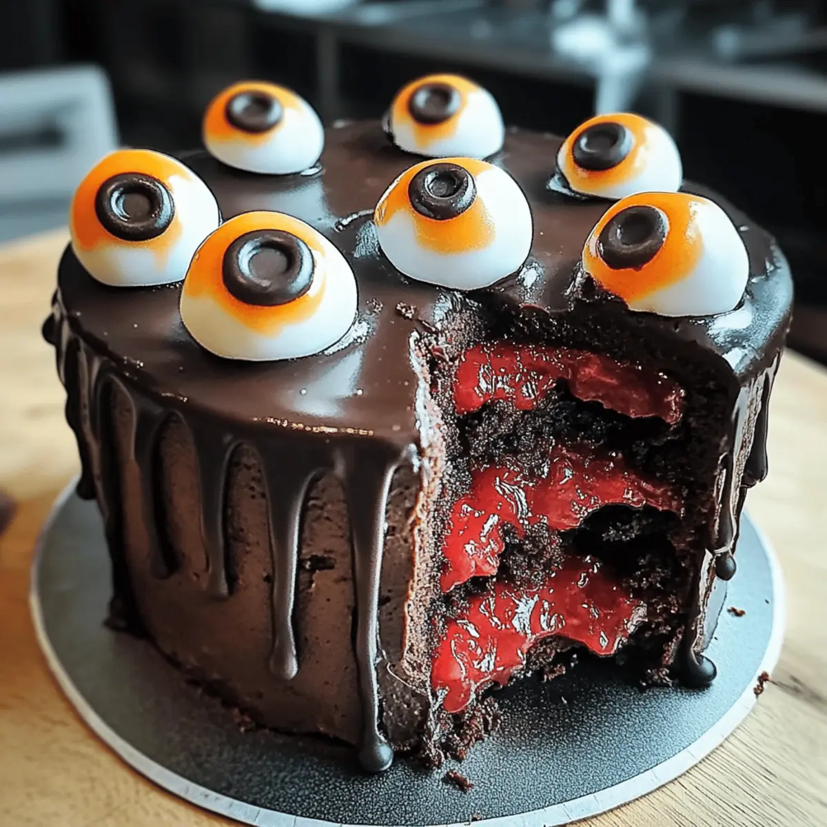 Es klopft an die Tür und auf der anderen Seite sind die kleinen Gespenster und Hexen, bereit für eine schaurig-schöne Zeit! Dieser Spooky Halloween Cake mit Edible Eyeballs ist ein absolutes Muss für jede Halloween-Feier und wird garantiert der Mittelpunkt Ihres Festes. Mit seiner schokoladigen Basis und dem leuchtend roten Fruchtfüllung ist dieser Kuchen nicht nur ein echter Hingucker, sondern auch ein unwiderstehlicher Genuss. Die edel gestalteten, essbaren Augäpfel aus Fondant oder Gelatine geben dem Kuchen ein lustig-gruseliges Flair und machen ihn zu einem perfekten Projekt für die ganze Familie. Egal, ob Sie eine schaurige Halloween-Party oder einen gemütlichen Abend mit Freunden planen, dieser Kuchen ist eine großartige Möglichkeit, um mit Freude und Kreativität in die Halloween-Saison zu starten! Welche lustigen Dekorationen werden Sie diesem Jahr ausprobieren?