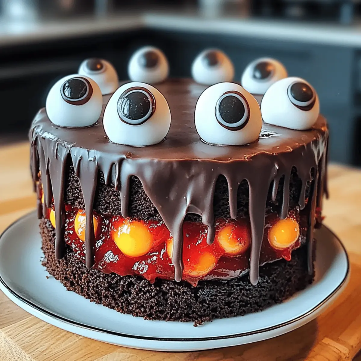 Einzigartiger Blickfang: Dieser Kuchen zieht garantiert alle Blicke auf sich! Die schaurigen essbaren Augen aus Fondant sind nicht nur dekorativ, sondern auch ein echtes Highlight auf jeder Halloween-Feier. Einfach zuzubereiten: Mit einfachen Zutaten und einer klaren Anleitung gelingt Ihnen dieser Kuchen im Handumdrehen – ideal auch für Backanfänger! Vielfältige Optionen: Variieren Sie die Füllungen nach Belieben, sei es mit Erdbeermarmelade oder einem köstlichen Kirschkompott für eine fruchtige Note. Für die ganze Familie: Ob für eine Kinderparty oder ein gruseliges Treffen mit Freunden, dieser Kuchen kommt bei Jung und Alt gut an. Lecker und lustig: Er vereint schokoladigen Genuss mit witzigem Design, was ihn perfekt für gesellige Anlässe macht. Lassen Sie sich auch von anderen leckeren Kreationen inspirieren, wie dem Zimtschnecken Cheesecake Rezept oder den Salz Karamell Cheesecake Brownies!