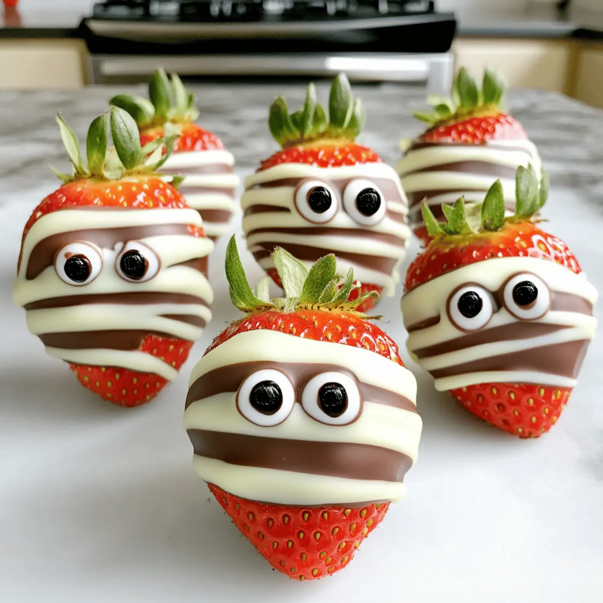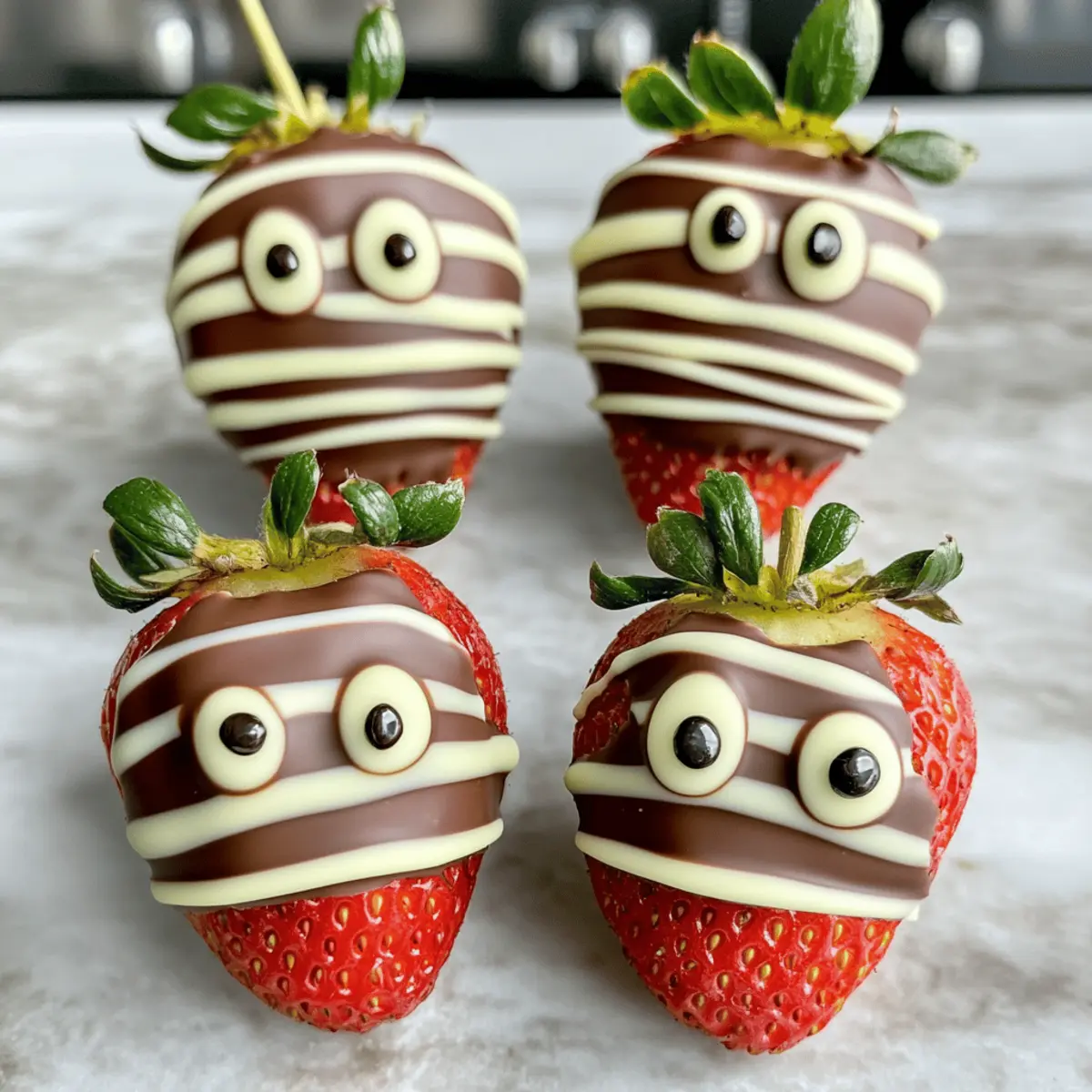 Lecker und Verspielt: Mit ihrer lustigen Mummy-Dekoration bringen sie nicht nur Geschmack, sondern auch Lächeln auf die Gesichter der Gäste. Die Kombination aus saftigen Erdbeeren und geschmolzener Schokolade sorgt für ein wahres Geschmackserlebnis.