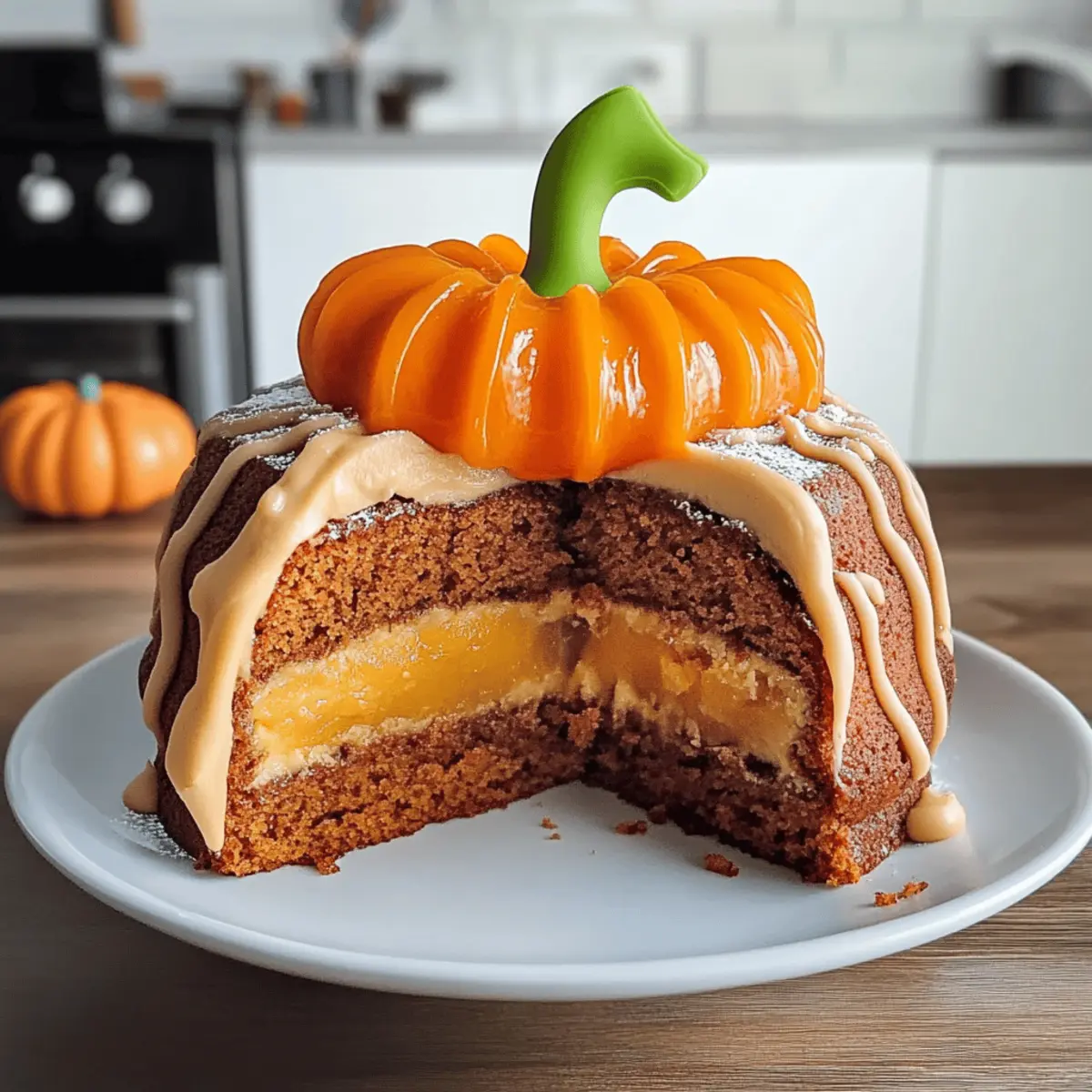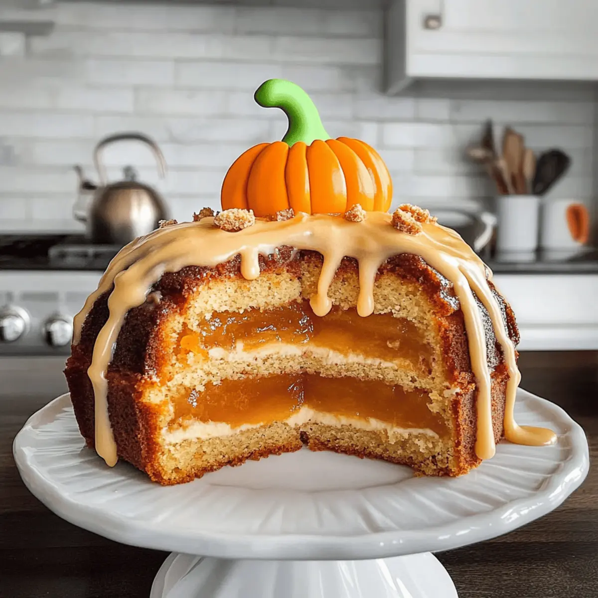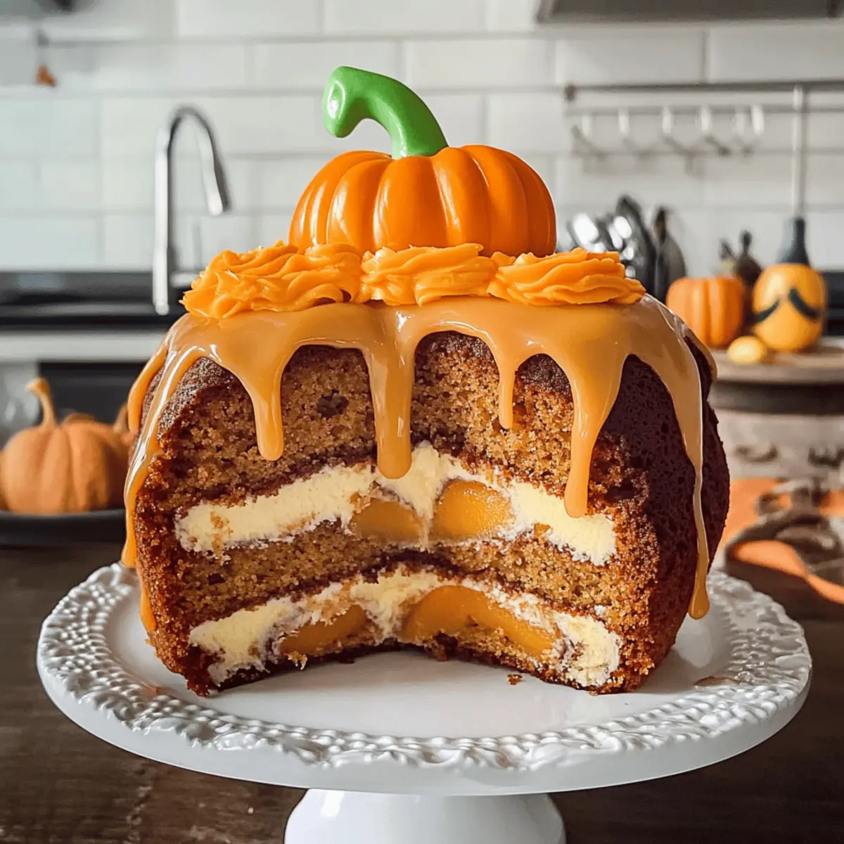 Beeindruckendes Aussehen: Die Kürbisform dieses Kuchens wird garantiert die Blicke deiner Gäste auf sich ziehen und sorgt für festliche Stimmung.