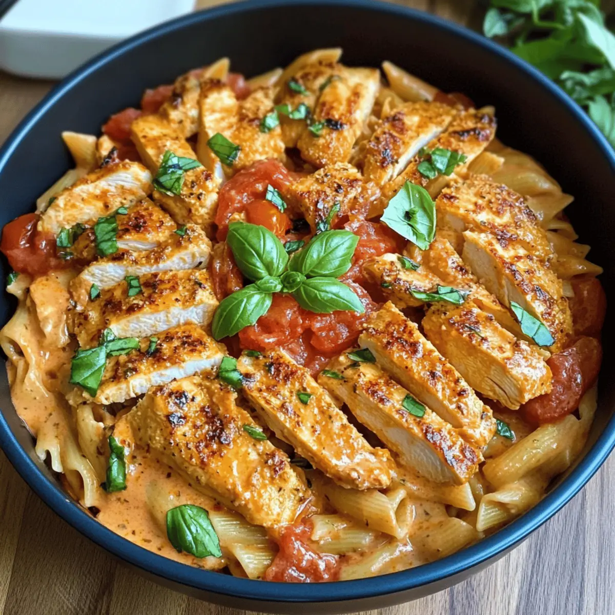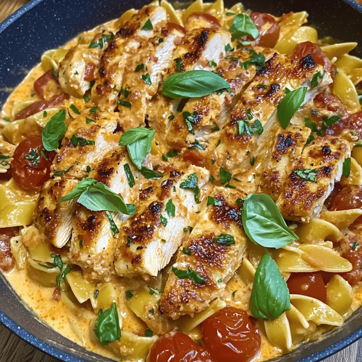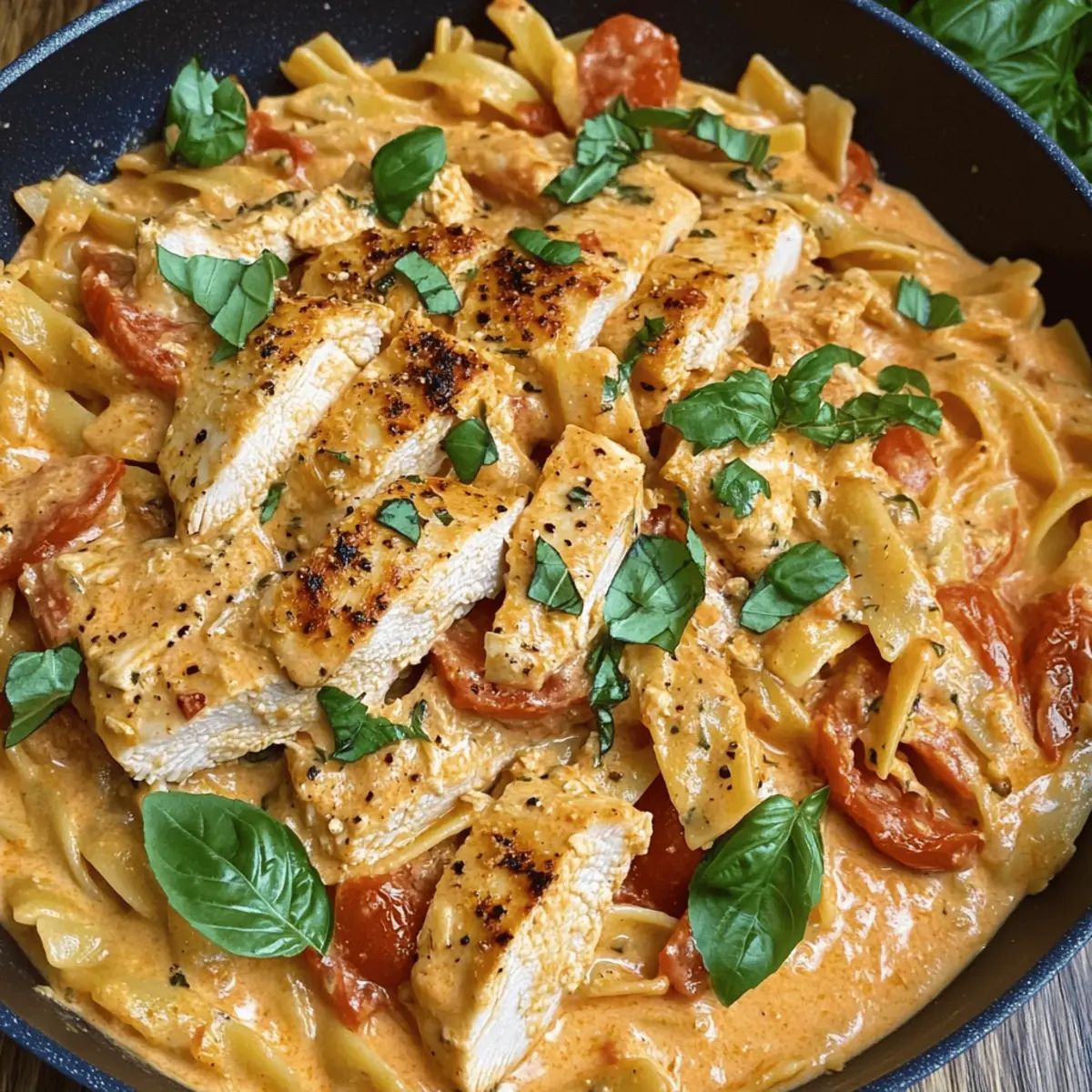 Cremiger Genuss: Die Kombination aus einer reichen Tomatenrahmsauce und zartem Hähnchen sorgt für ein Geschmackserlebnis, das deine Geschmacksknospen verwöhnt.