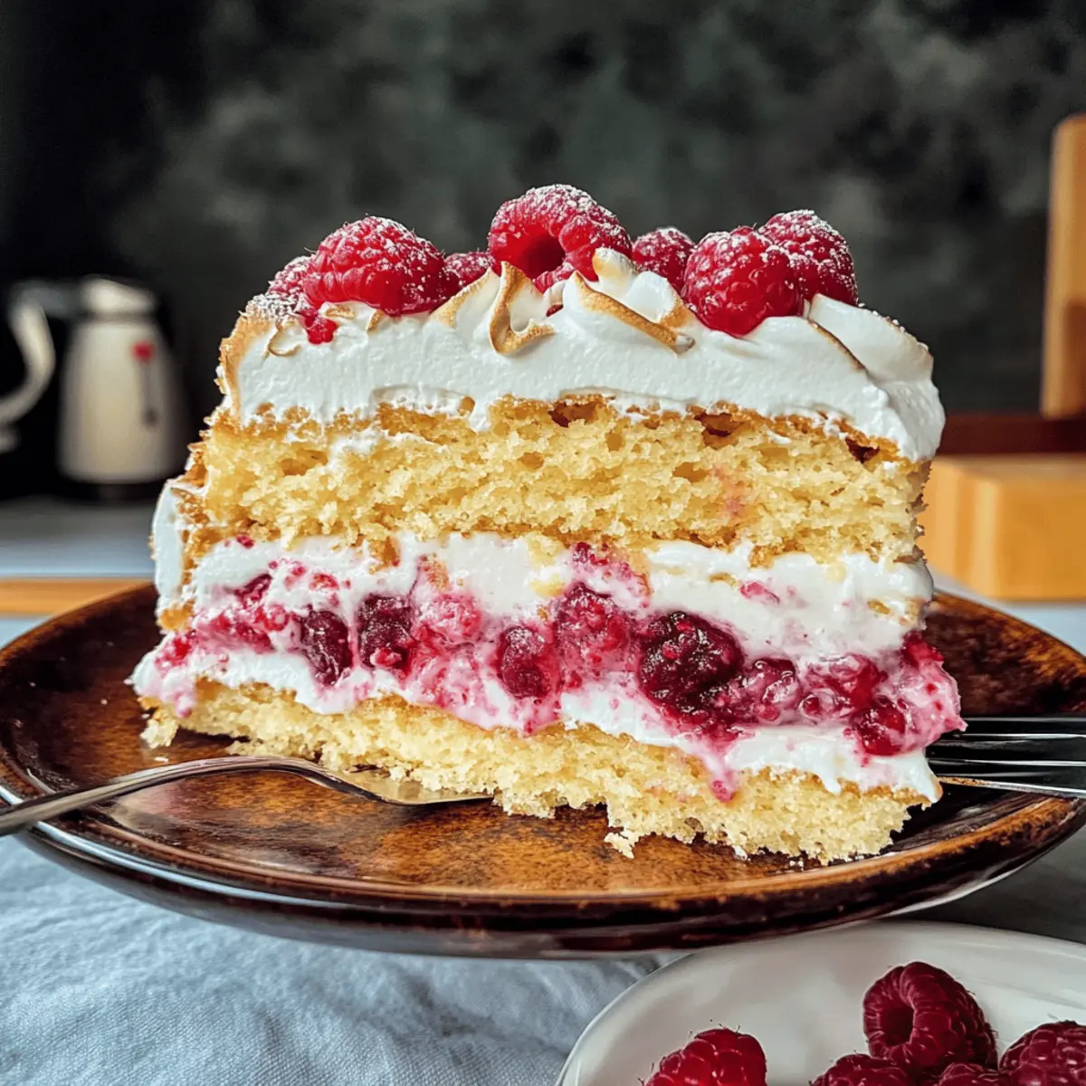 Lasse die fertige Himmelstorte für mindestens 4 Stunden, idealerweise über Nacht, im Kühlschrank durchziehen. Dies hilft, die Aromen zu intensivieren und festigt die Textur. Vor dem Servieren die Torte mit frischen Himbeeren dekorieren und genießen!