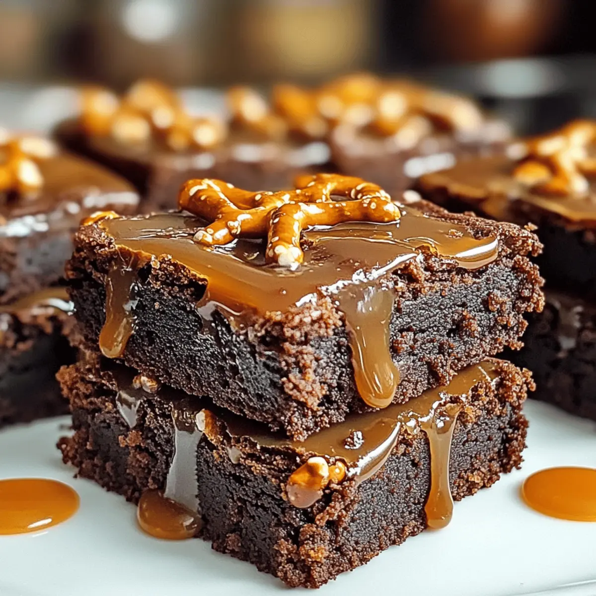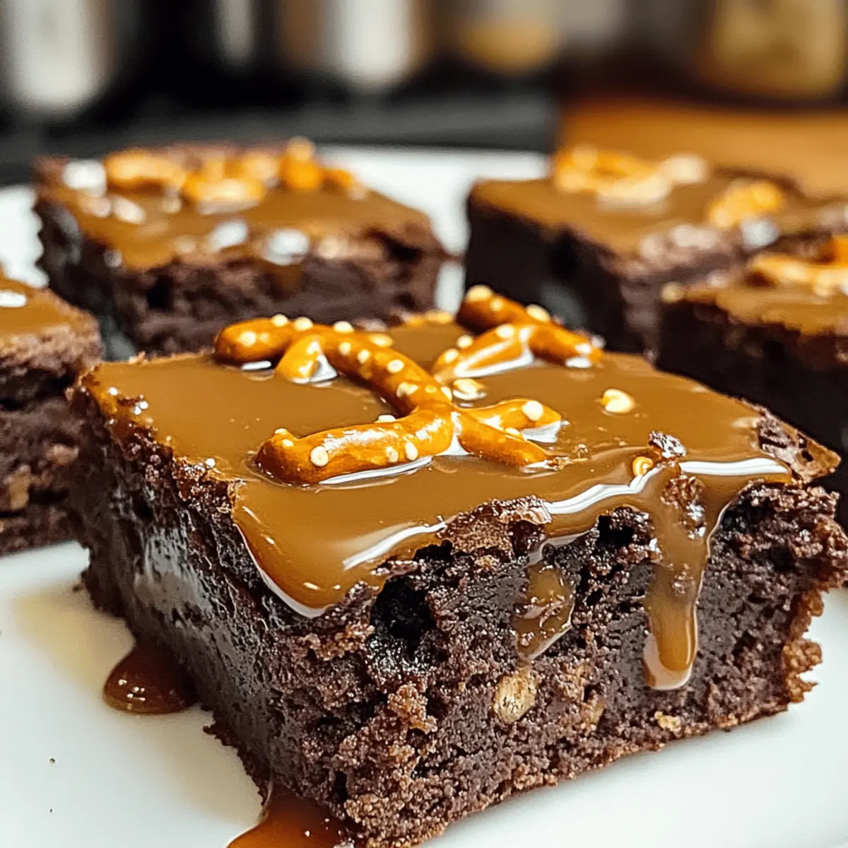 Unwiderstehliche Kombination: Diese Brownies vereinen cremigen Karamell und knusprige Pretzels, die perfekt harmonieren. Ein Geschmackserlebnis der Extraklasse!