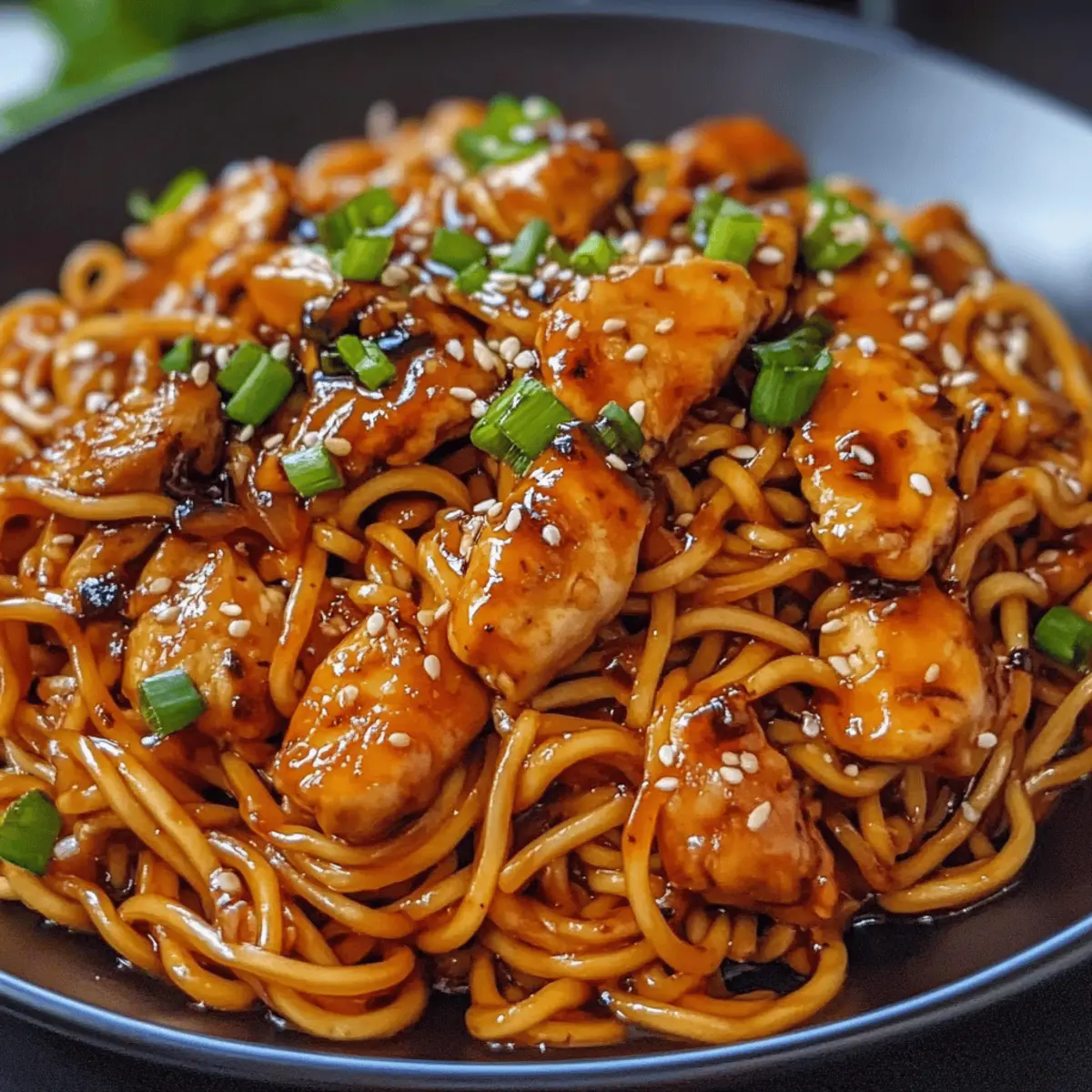 Richte die Klebrigen Knoblauch-Hühnchen-Nudeln auf Tellern an und garnieren sie nach Belieben mit Sesam oder gehackten Frühlingszwiebeln. Du kannst auch zusätzliches Gemüse wie Paprika oder Brokkoli hinzufügen, um das Gericht abzurunden. Serviere es heiß und genieße diesen köstlichen Genuss, der deine Familie begeistern wird!