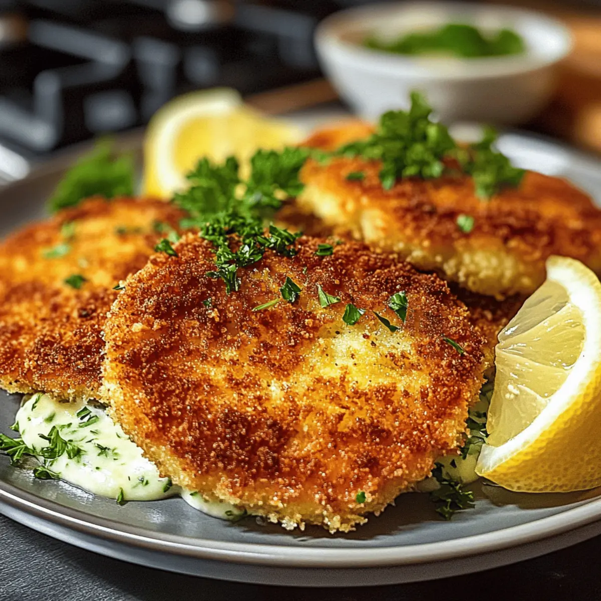 Cremige Kräuter-Dip: Ein erfrischender Dip aus Joghurt und frischen Kräutern verstärkt den Geschmack der Schnitzel. Die Frische des Dips bringt Lebendigkeit auf den Teller.