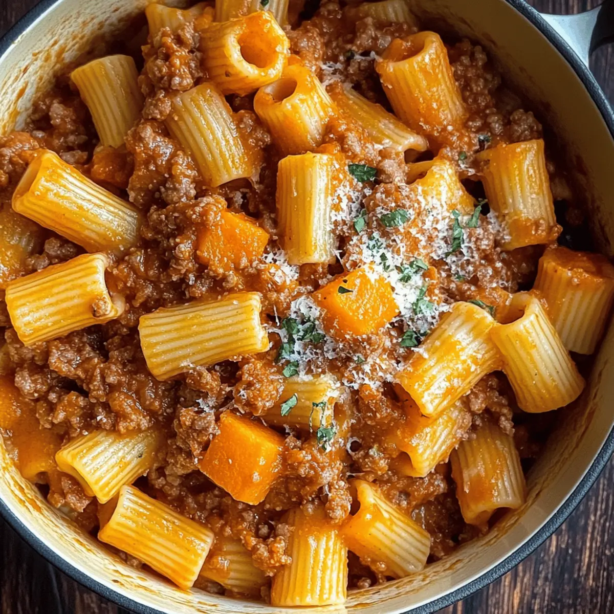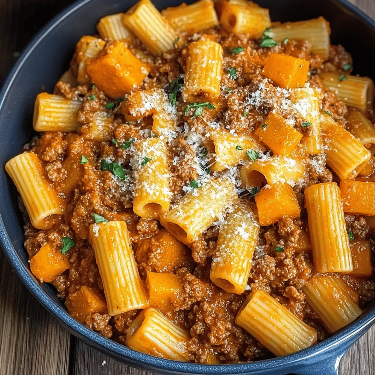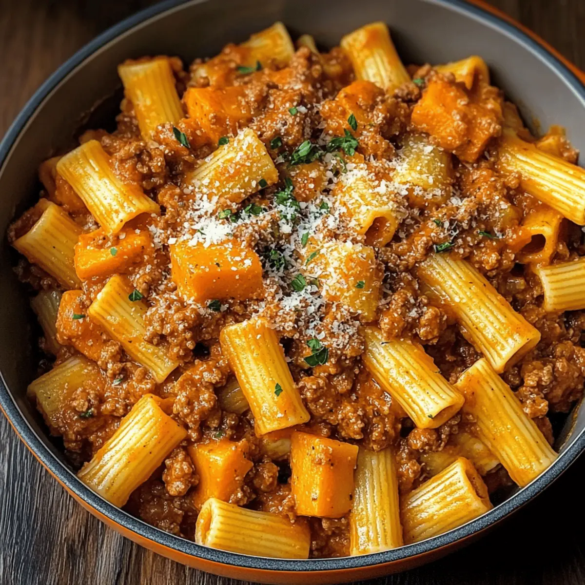 Köstliche Kombination: Die Cremigkeit des Kürbisses harmoniert perfekt mit der herzhaften Bolognese und sorgt für ein unglaublich befriedigendes Geschmackserlebnis.
