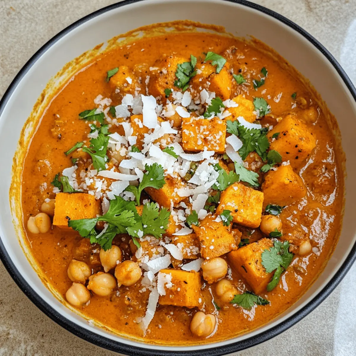 Reichhaltiger Geschmack: Eine Kombination aus Gewürzen und Kokosmilch sorgt für eine harmonische Mischung aus süß und würzig.