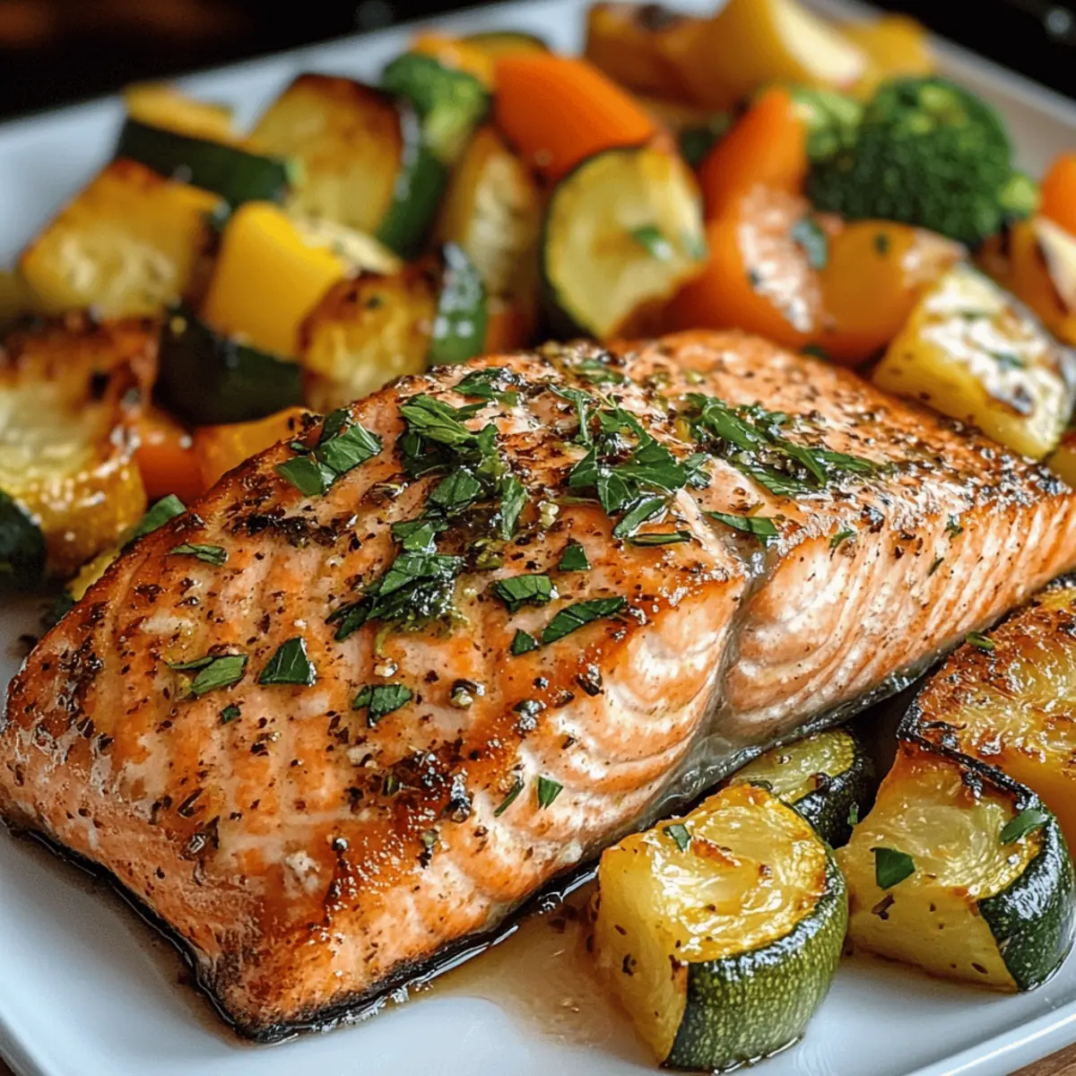 Bunte Präsentation: Die leuchtenden Farben von Lachs und Gemüse machen es zum perfekten Hingucker – ideal für jede Dinnerparty.
