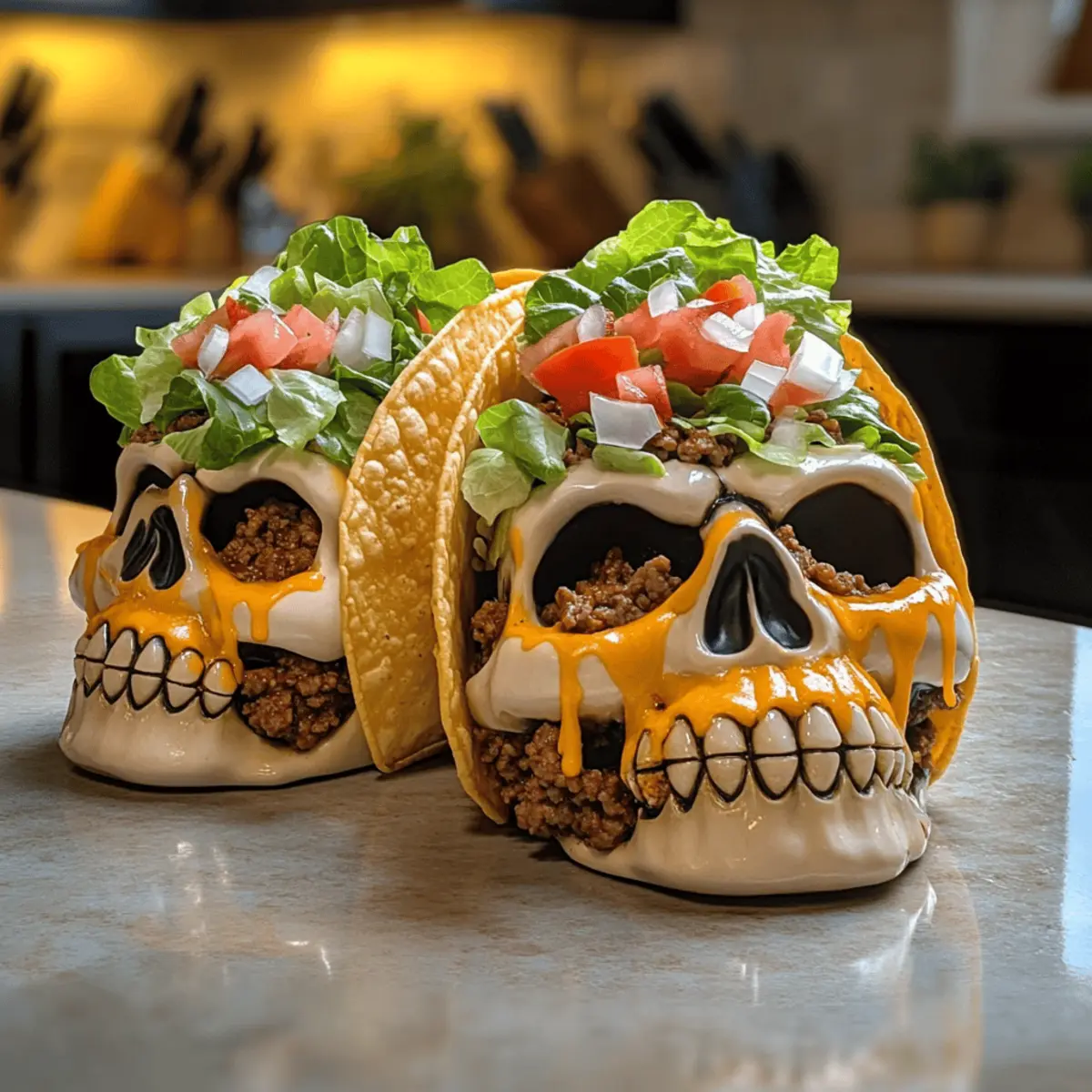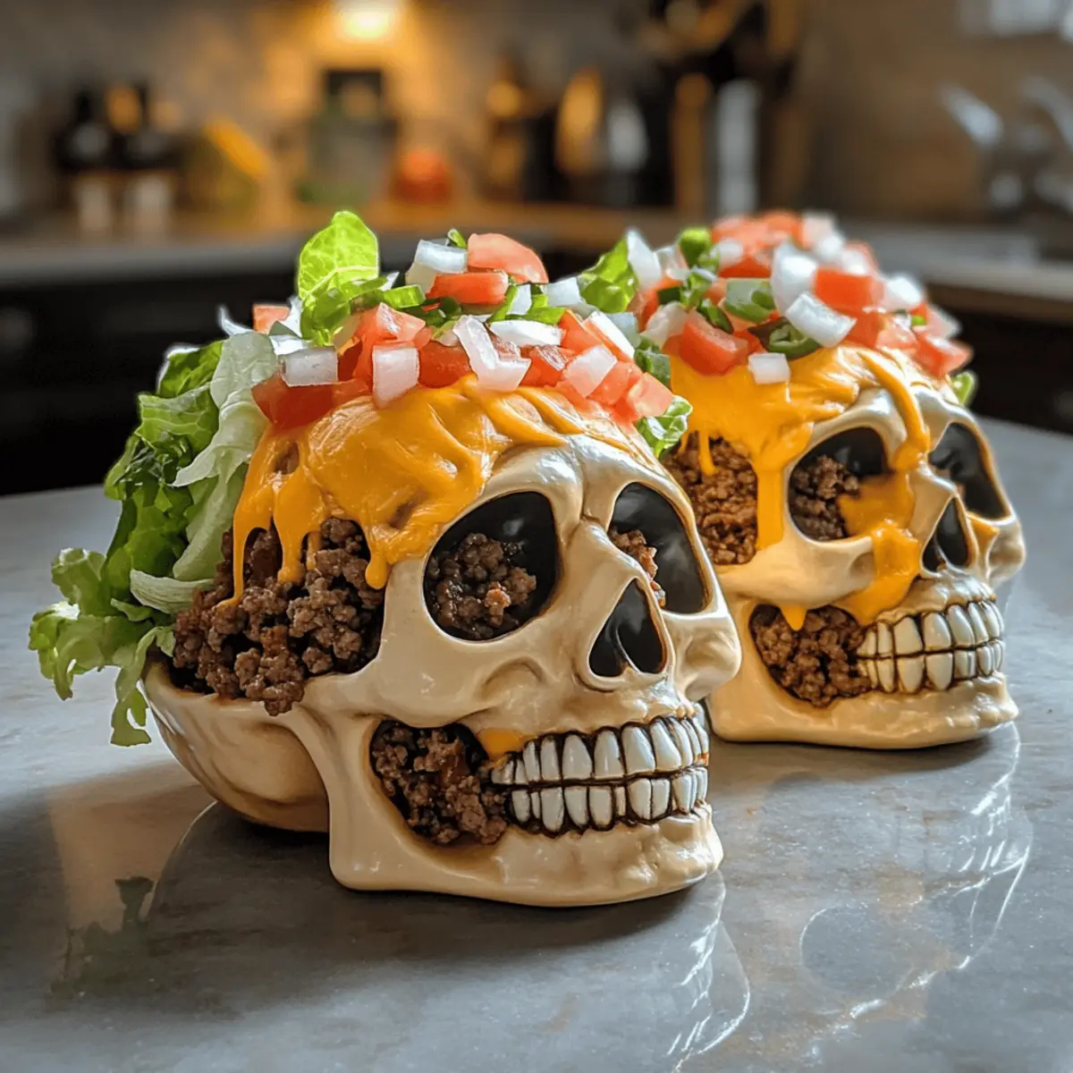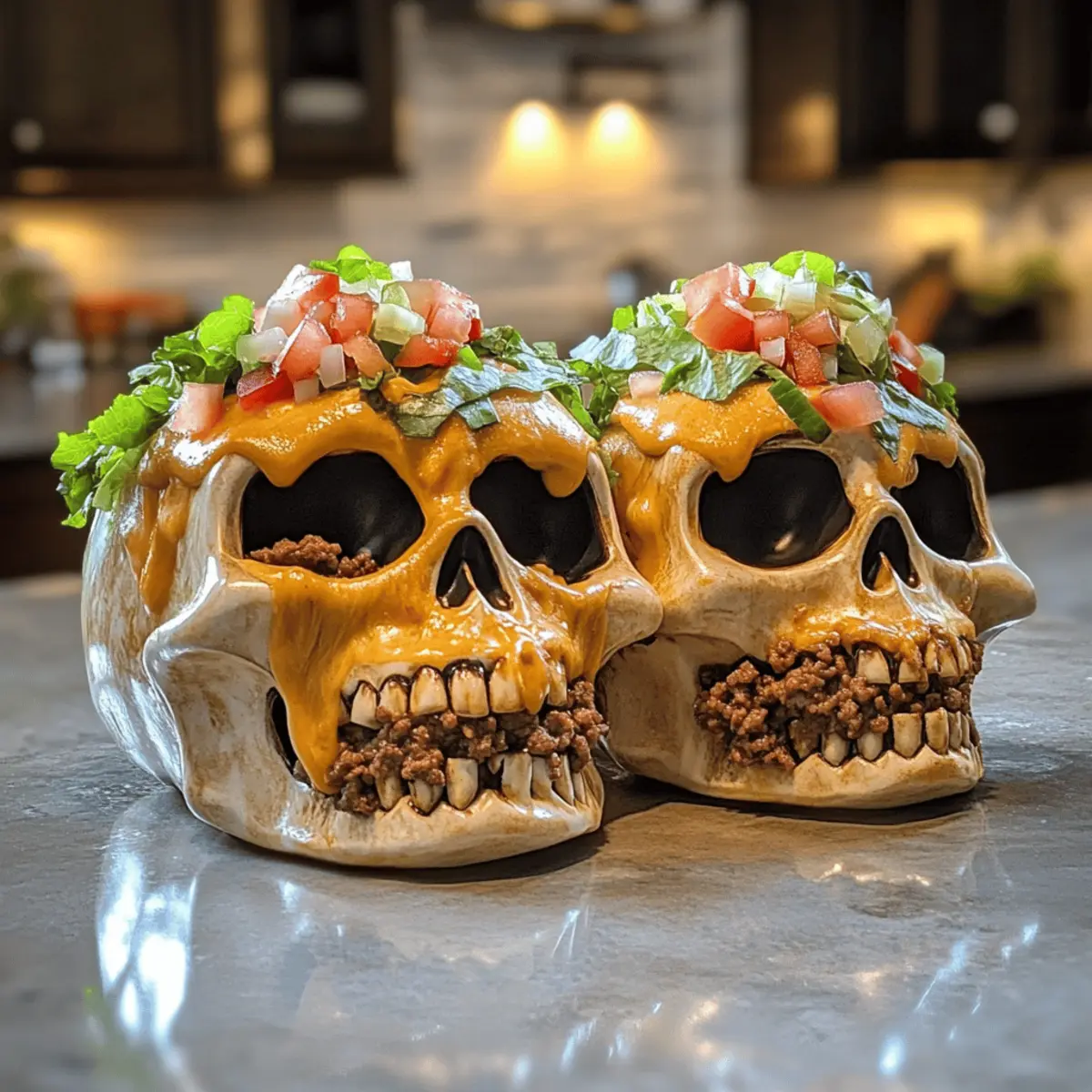 Lass deiner Kreativität freien Lauf und passe dieses Rezept nach deinem Geschmack an! Genieße die verschiedensten Aromen und Texturen, während du diese schaurigen Taco Schädel zubereitest.