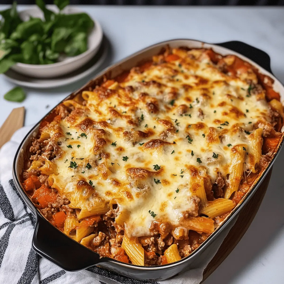Wunderbarer Geschmack: Die Kombination aus cremiger Tomatensoße und geschmolzenem Käse ist einfach unwiderstehlich und macht diesen Auflauf zum Lieblingsgericht.