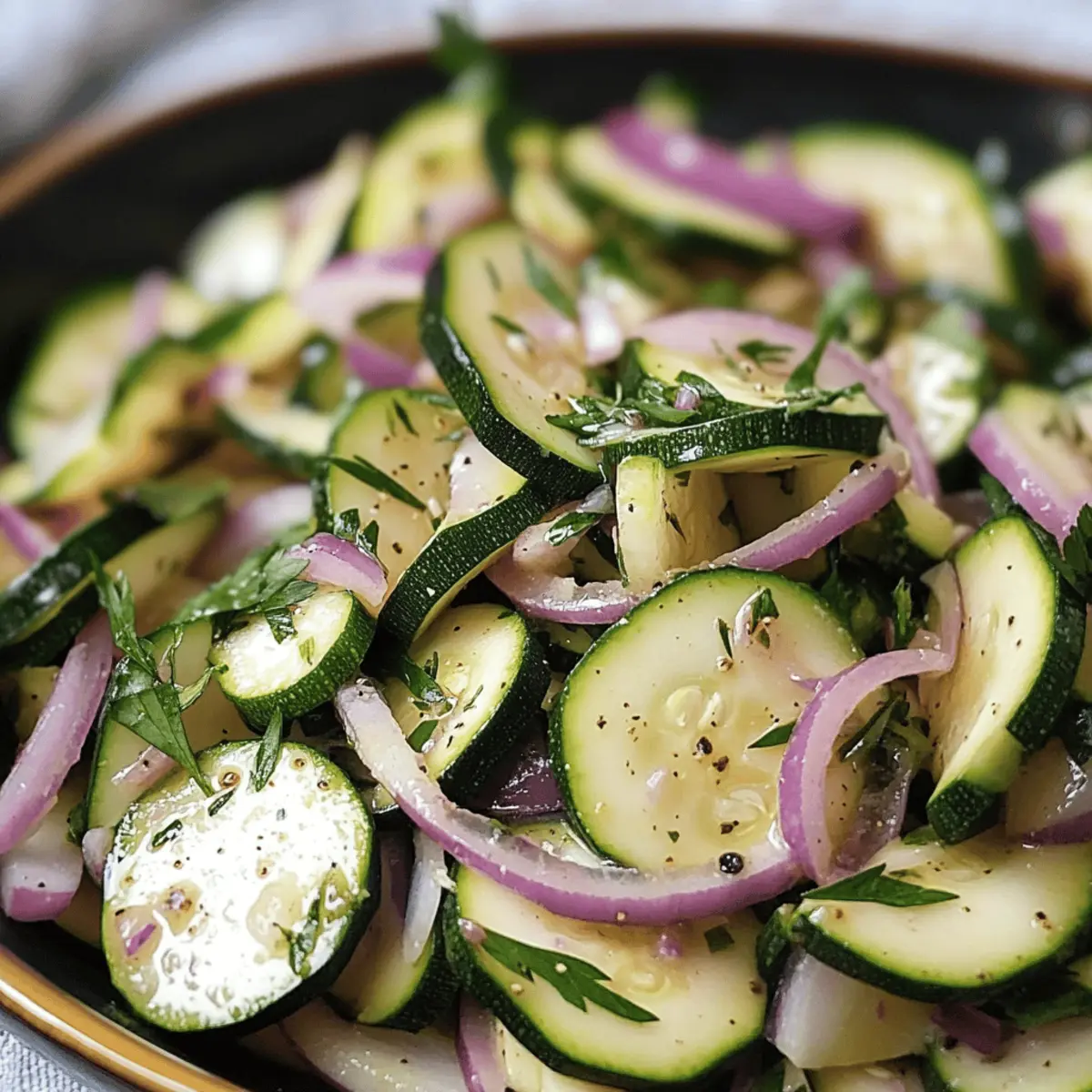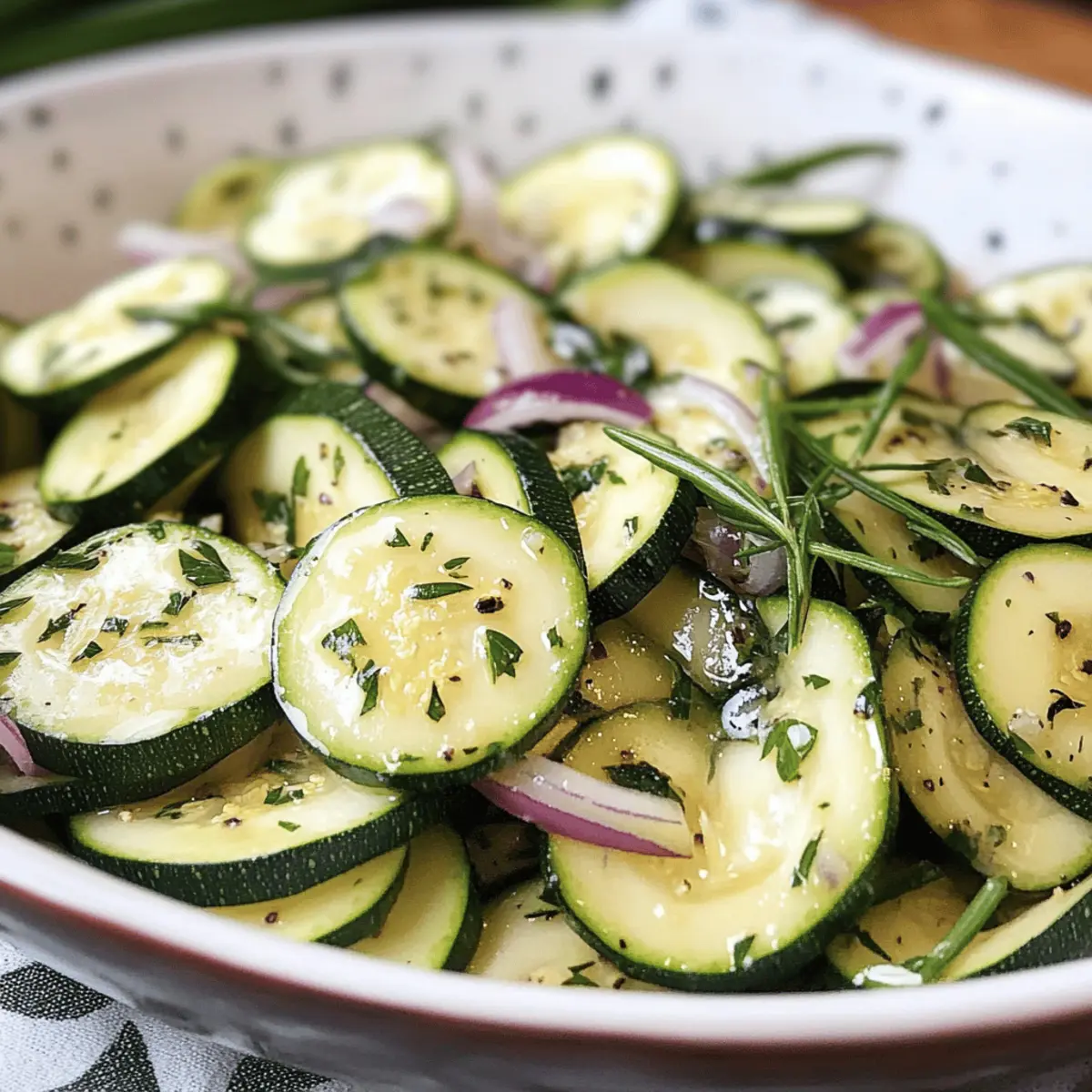 Der Schüttelzucchini ist ideal für die Vorausplanung! Du kannst die Zucchini und Zwiebeln bis zu 24 Stunden im Voraus vorbereiten. Dazu einfach die Zucchini in Runden oder Halbmonde schneiden und die Zwiebel hacken; diese Schritte lassen sich hervorragend vorher machen, da die Zutaten gut im Kühlschrank aufbewahrt werden können. Um die Qualität zu erhalten und ein Verknoten von Aromen zu vermeiden, empfehle ich, den Schüttelzucchini in einem luftdichten Behälter zu marinieren und regelmäßig umzuschütteln. Wenn du bereit bist, zu servieren, einfach die Zwiebelstücke nach Geschmack entfernen und den Salat kühl genießen – ein fresher Snack mit minimalem Aufwand!
