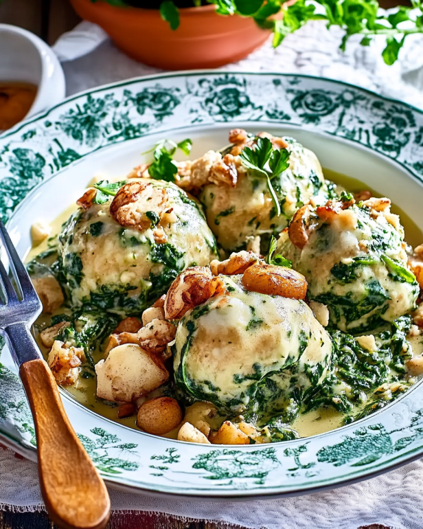 - Servieren mit Beilagen: Servieren Sie die Spinatknödel mit einem frischen Salat oder geröstetem Gemüse, um eine ausgewogene Mahlzeit zu kreieren.