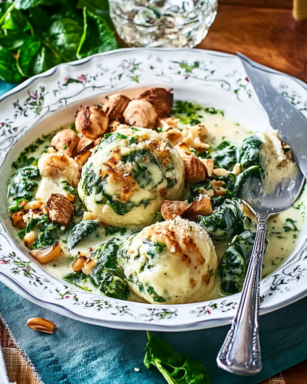 - In einer tiefen Schale: Servieren Sie die Spinatknödel in einer tiefen Schale, übergossen mit dem cremigen Pilzragout. Dies sorgt für eine rustikale Präsentation und macht das Essen besonders einladend.