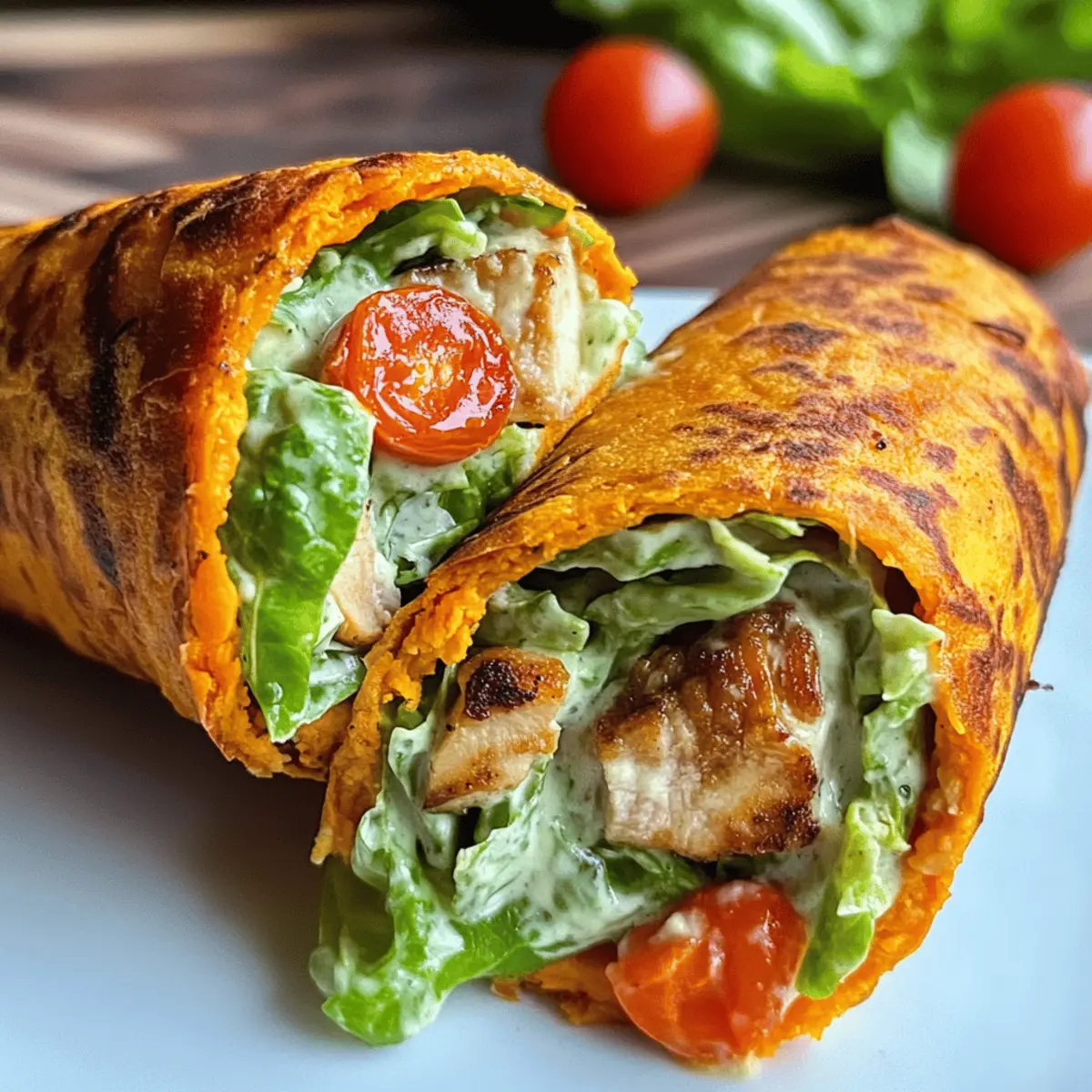 Einzigartig und köstlich: Dieser Süßkartoffelwrap Caesar-Stil kombiniert die Süße von Süßkartoffeln mit dem herzhaften Geschmack von Caesar-Dressing zu einer unwiderstehlichen Komposition.