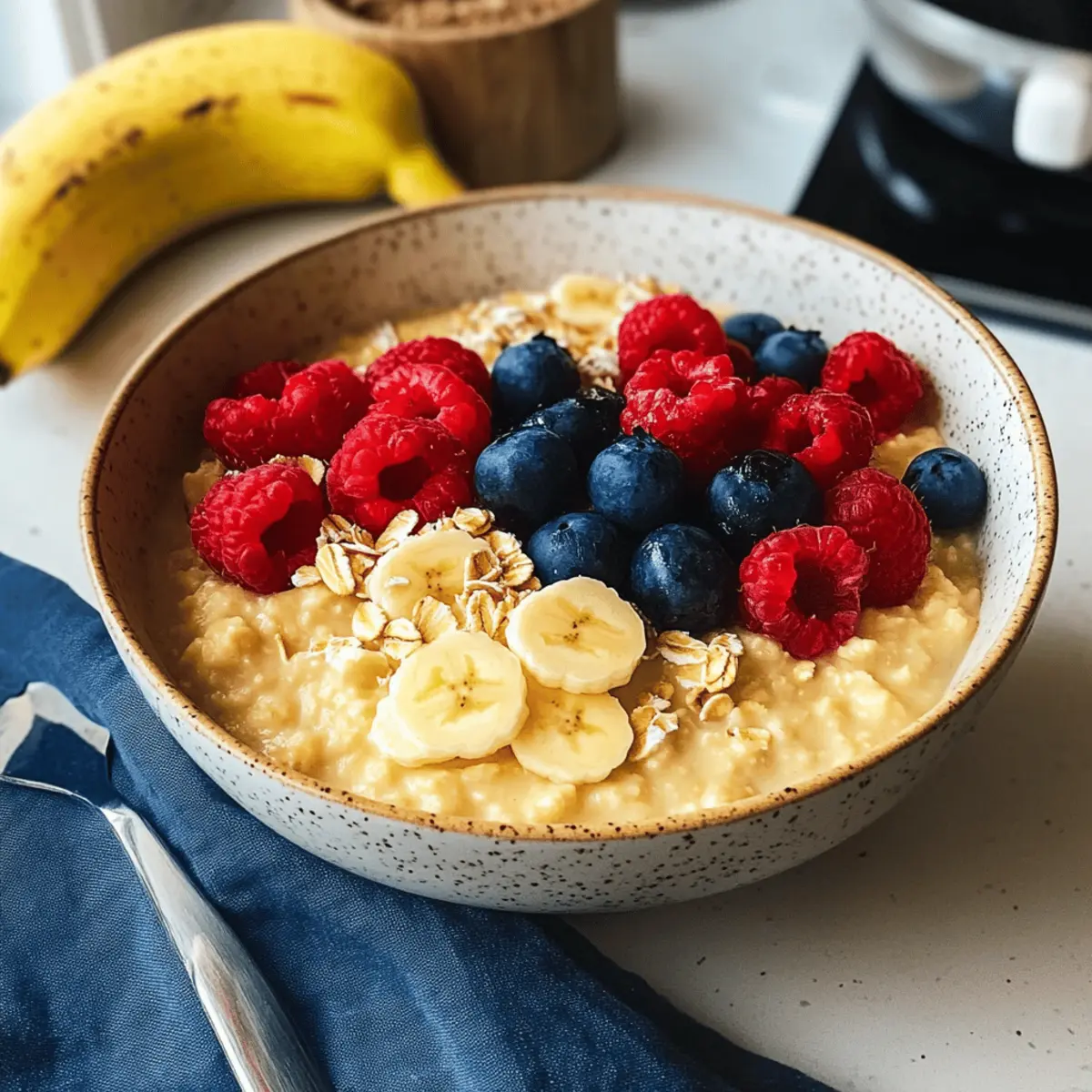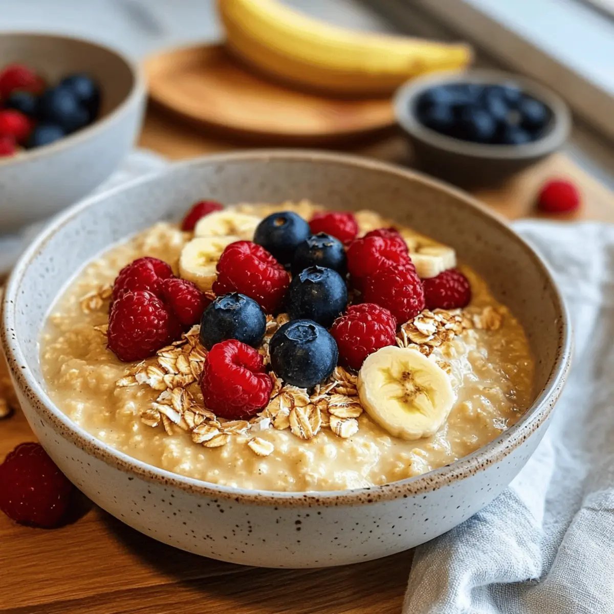 Stellt euch vor, wie ihr euren cremigen Vanillepudding Haferbrei genießt, umgeben von köstlichen Beilagen, die den Genuss perfekt abrunden.