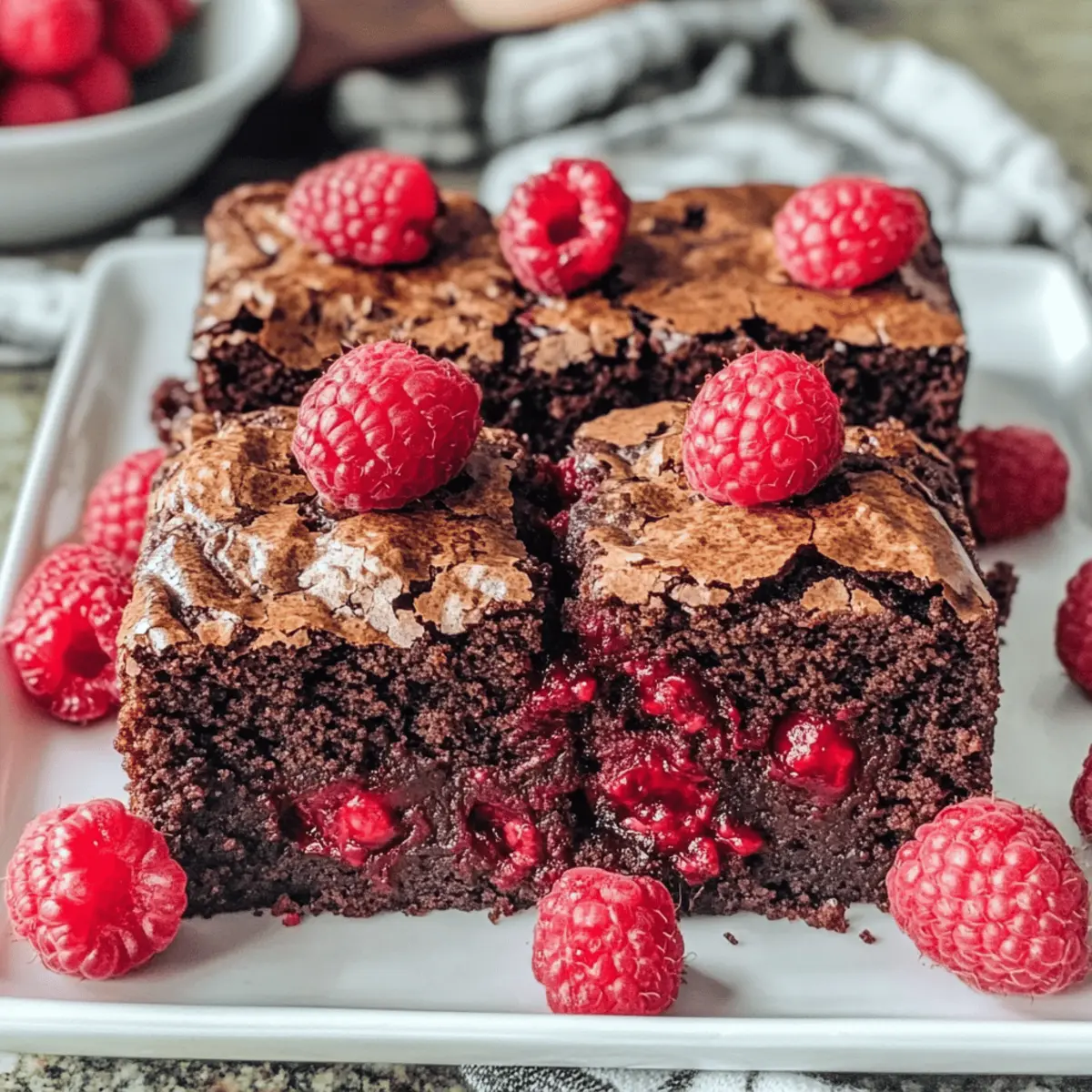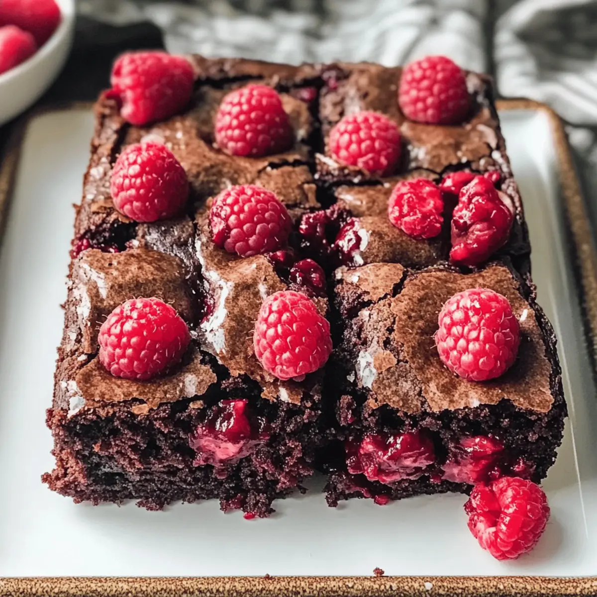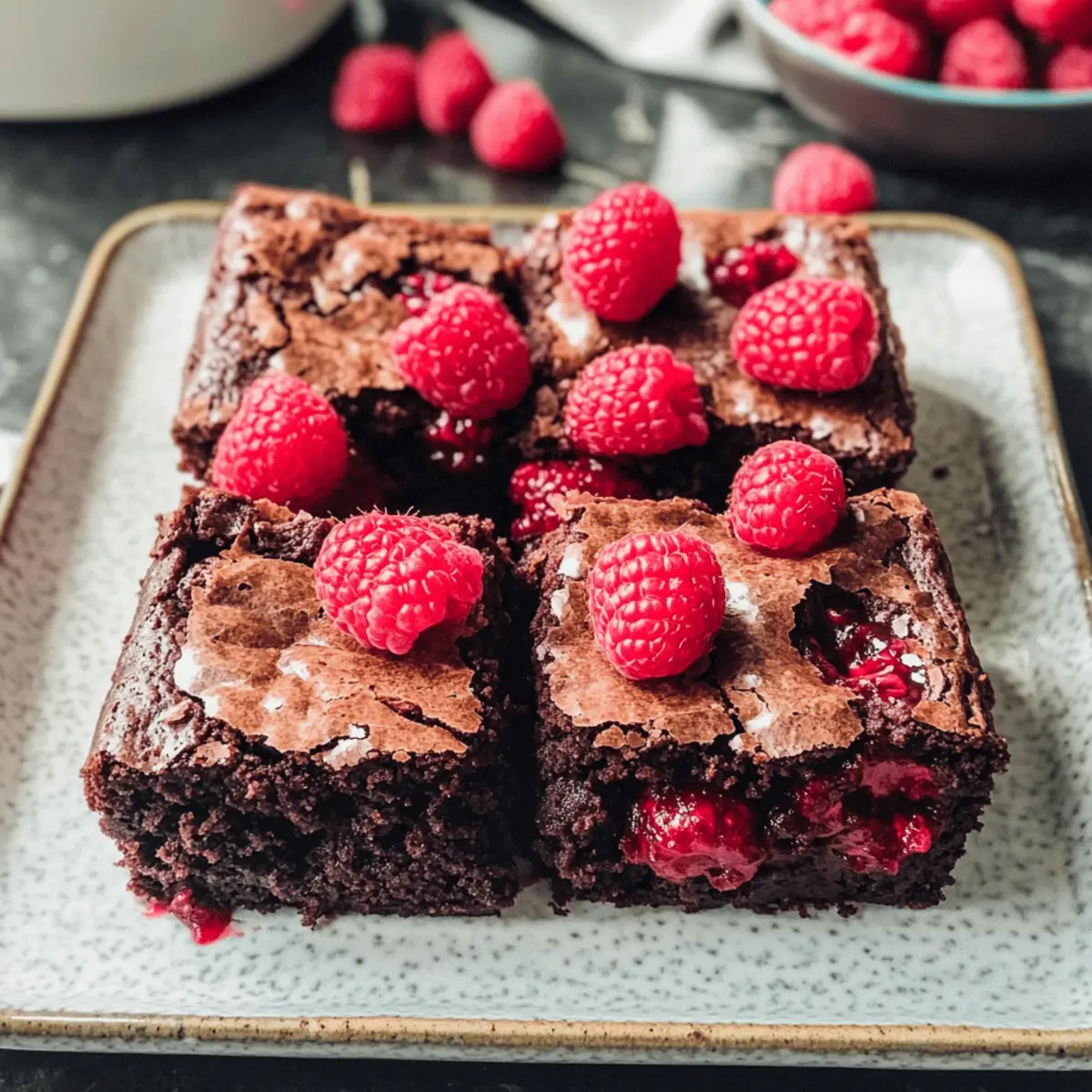 Köstliche vegane Himbeer-Brownies, die einfach zuzubereiten sind und eine perfekte Kombination aus Schokolade und Himbeeren bieten.