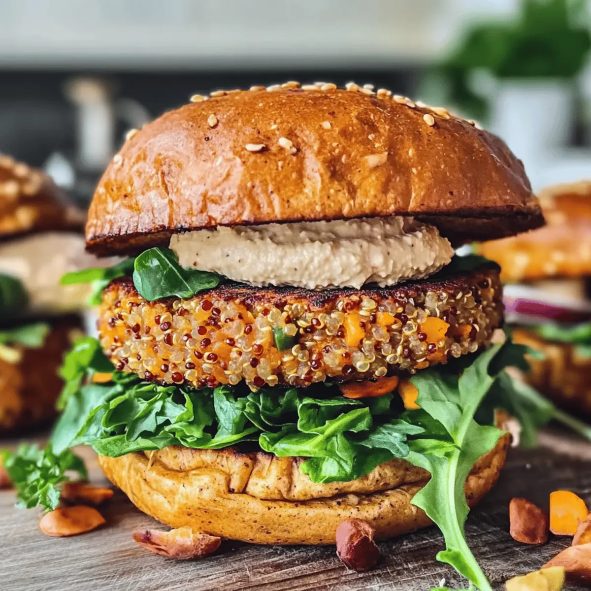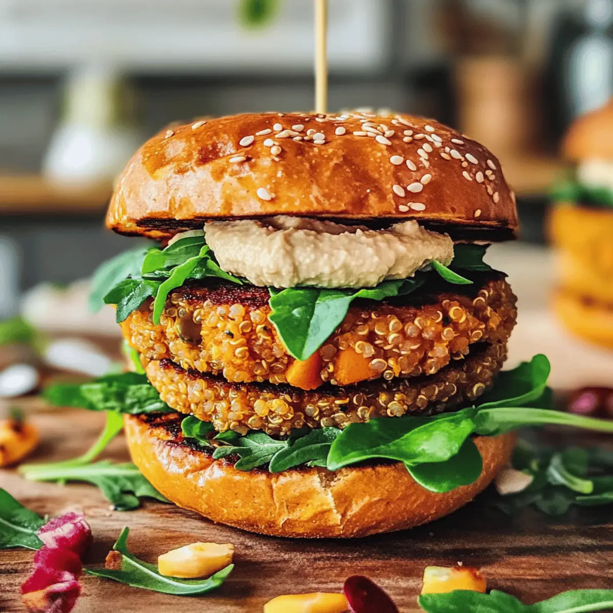 • Kreatives Topping: Anstelle von Hummus könntest du veganen Frischkäse oder eine scharfe Salsa verwenden, um verschiedene Geschmäcker zu kreieren und die Burger noch aufregender zu machen.